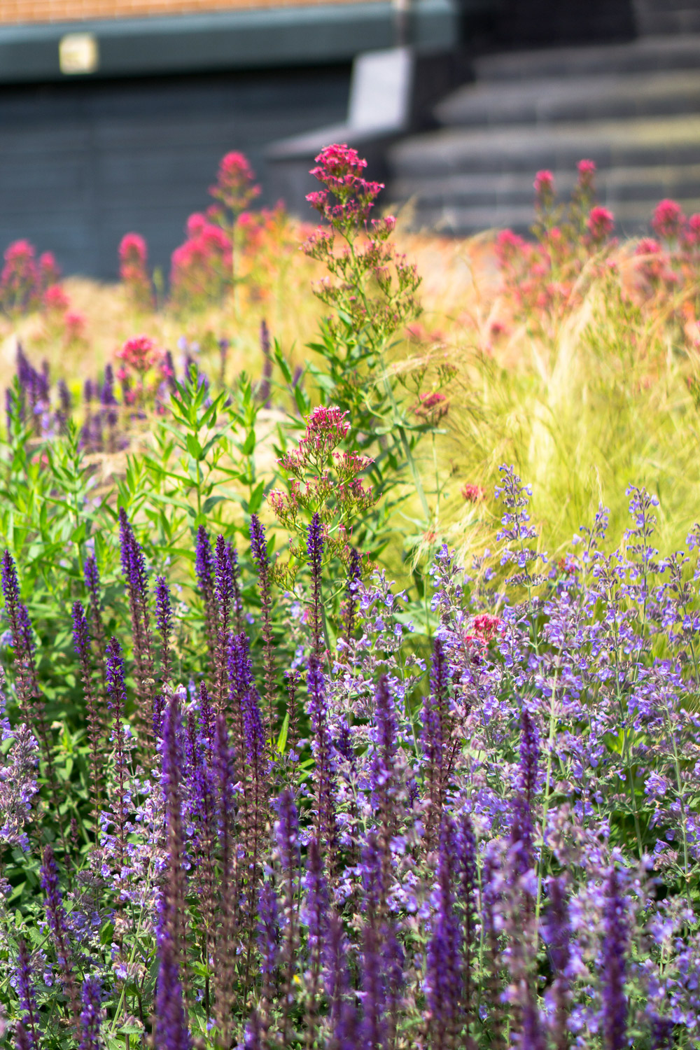 It is important to combine different shades of green with low-maintenance flowers to avoid an overdone aesthetic that detracts from the facade.