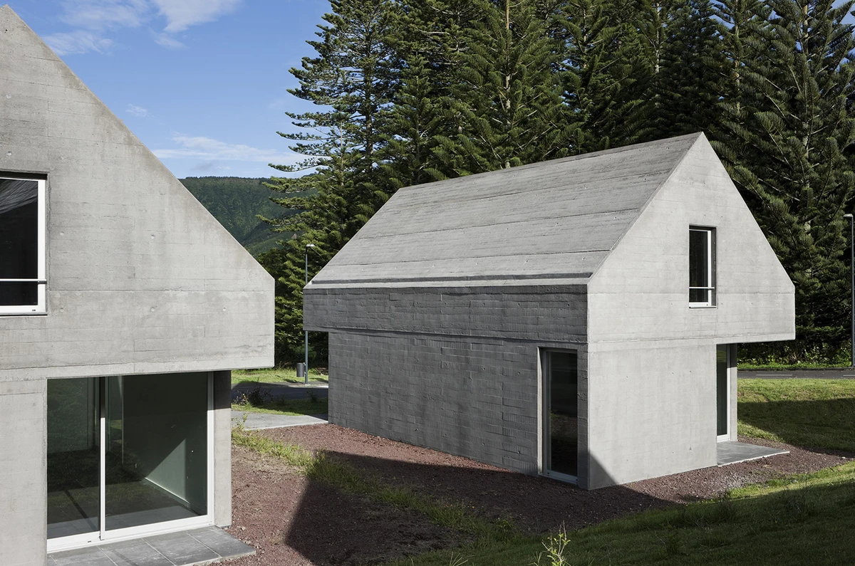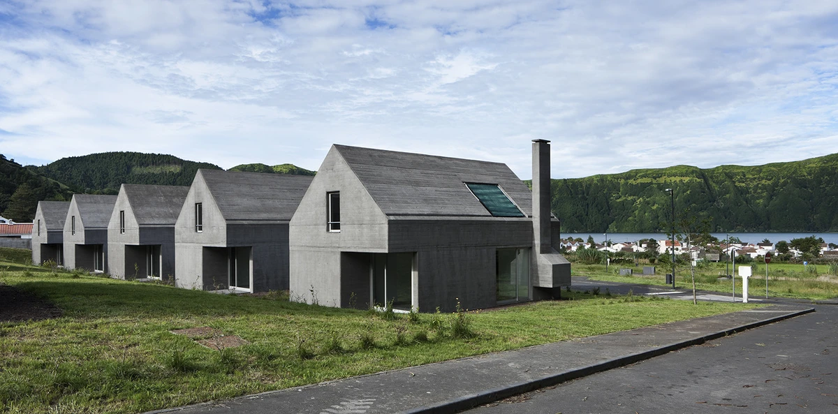 Estas 27 viviendas unifamiliares proyectadas sobre una parcela de 13.202m2 en una zona de la Vila das Sete Cidades en las Azores, llevan el inconfundible sello del arquitecto portugués, galardonado entre otros con un premio Pritzker en el año 2011, Eduardo Souto de Moura, en esta ocasión un proyecto en colaboración con Adriano Pimenta.