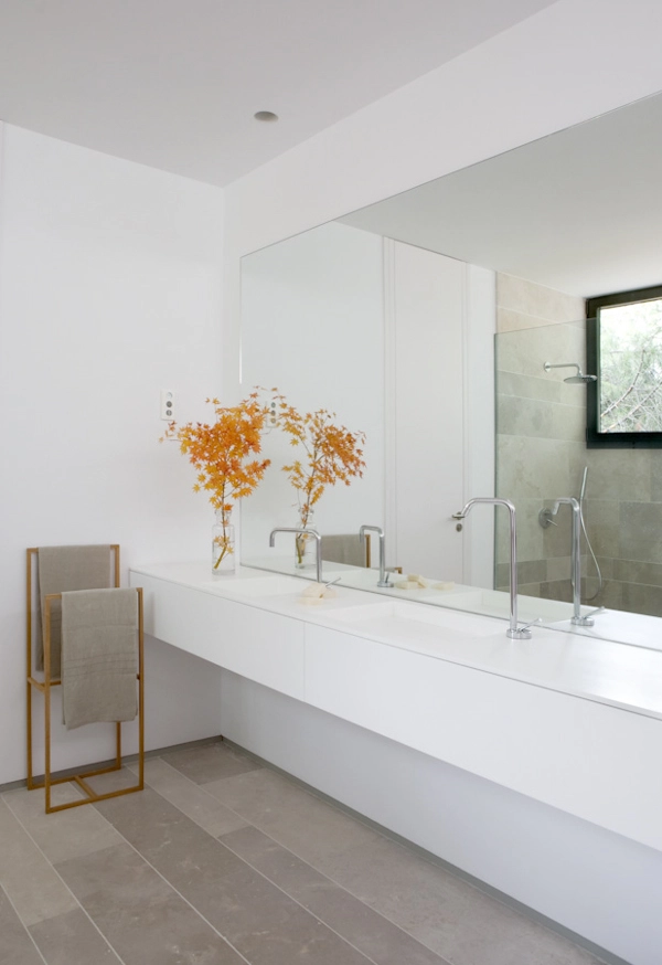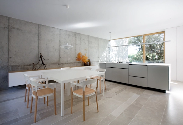 Proyecto de ÁBATON Arquitectura en Madrid (España). 671m2 construidos en una parcela de 700m2. Se trata de un espacio multiusos que abarca una oficina, showroom y almacén de materiales de construcción. Ubicada en una urbanización a las afueras de Madrid, el objetivo principal fue mostrar la arquitectura de ÁBATON de forma esquemática y limpia.