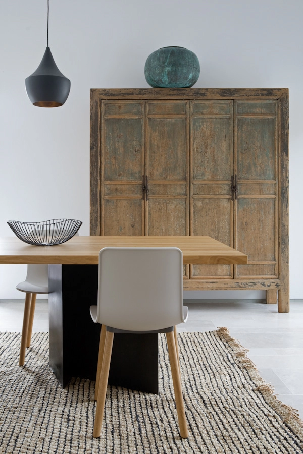 Mesa de comedor diseño exclusivo de BATAVIA. Armario chino decapado (pieza única) de BATAVIA