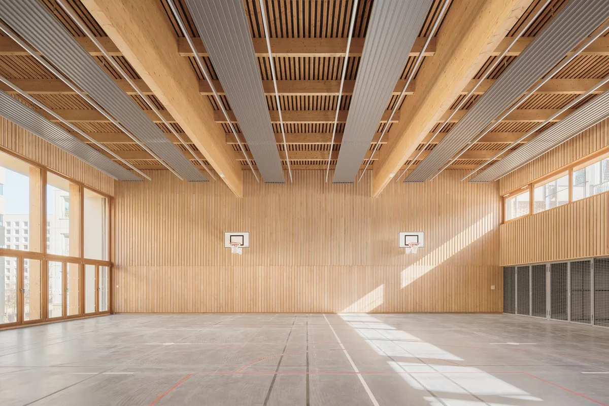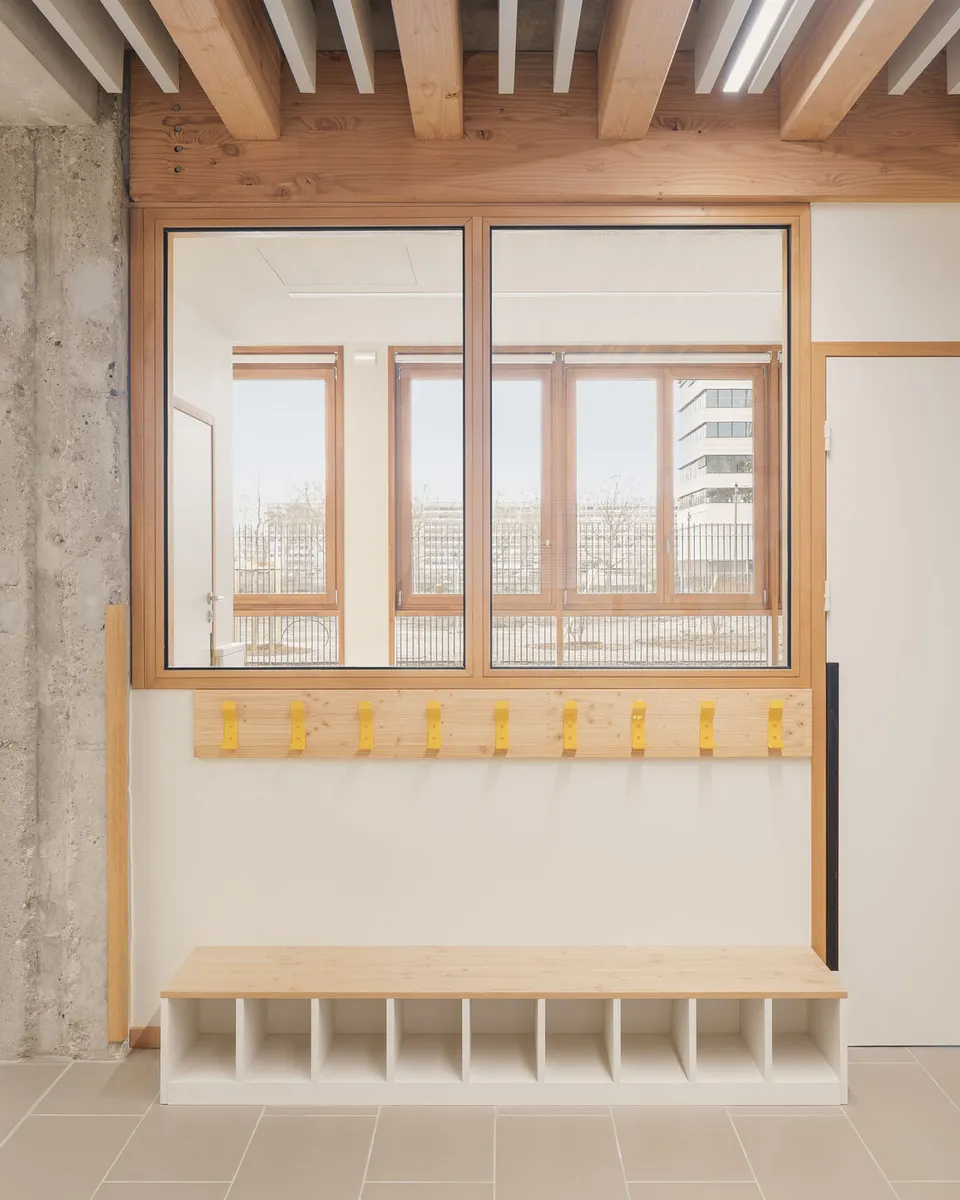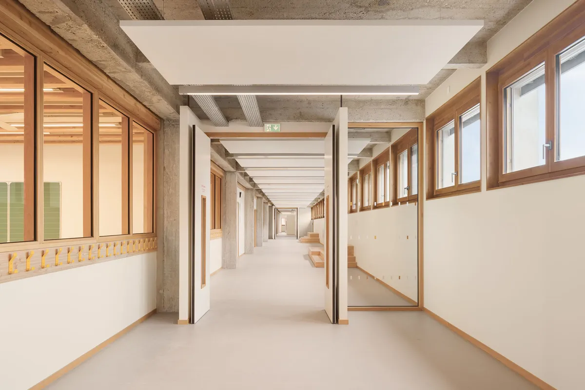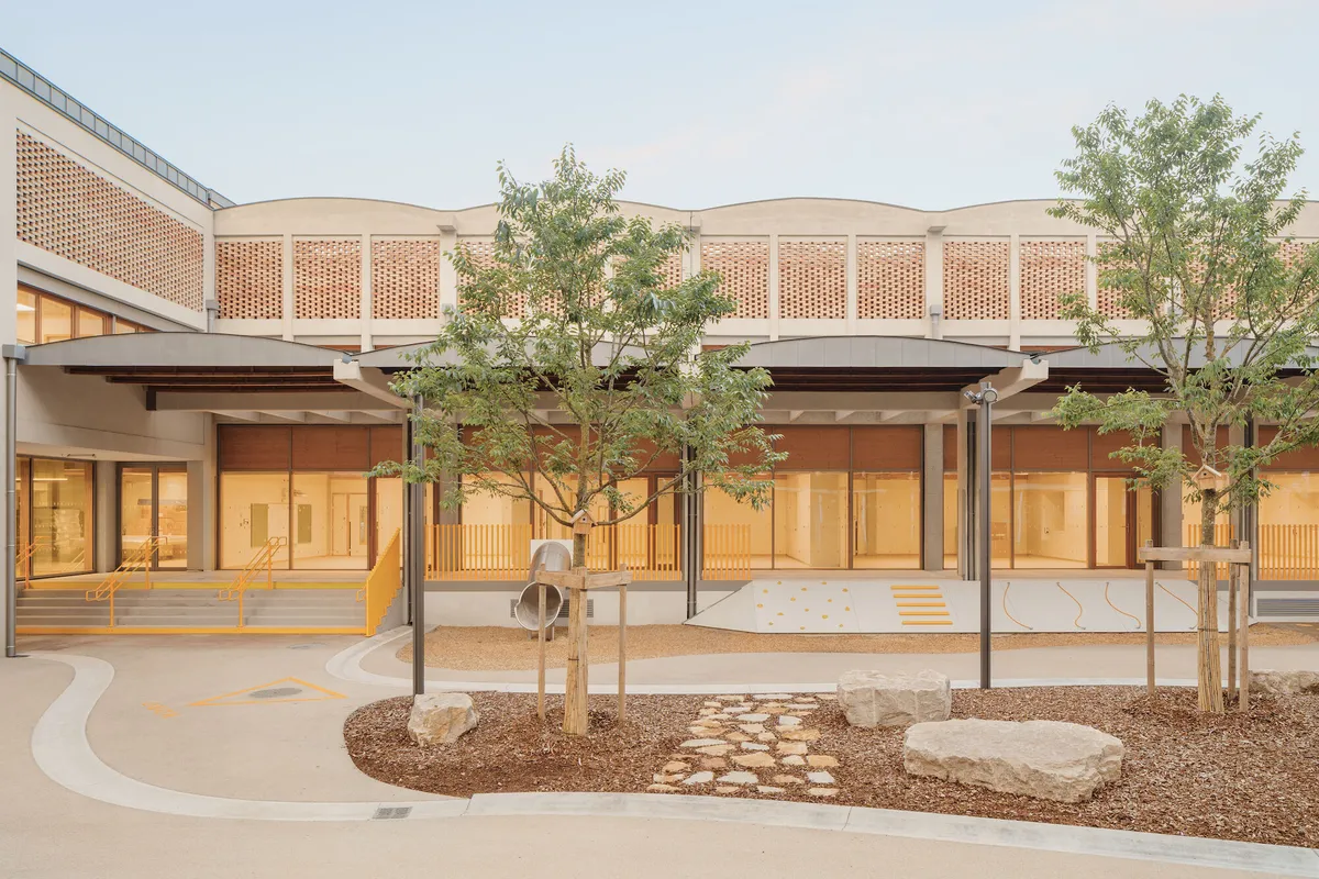 El edificio original, con su estructura robusta de ladrillo y hormigón, ofrecía un desafío interesante: cómo mantener su carácter industrial mientras se convertía en un espacio adecuado para la educación de niños. La respuesta de los arquitectos fue mantener la integridad del casco histórico y, al mismo tiempo, introducir elementos contemporáneos que respondieran a las necesidades funcionales y estéticas de una escuela moderna.