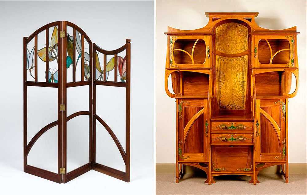 Gran parte de la inspiración en el diseño Art Nouveau se tomó de la naturaleza. En el diseño de muebles, es común el uso de flores, hojas y tallos retorcidos, con formas redondeadas, entrelazándose con el motivo central.