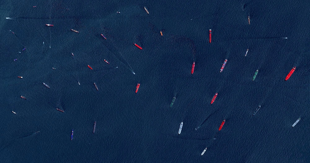 Elige casi siempre ejemplos de cómo la actividad humana configura el paisaje, a veces para bien y otras para mal. Así, en su catálogo conviven los espectaculares campos de tulipanes en plena floración de Lisse (Holanda) y los infinitos olivares cordobeses con las aglomeraciones urbanas de las grandes ciudades o la particular coreografía marina de petroleros y buques de contenedores en su aproximación al puerto de Singapur.