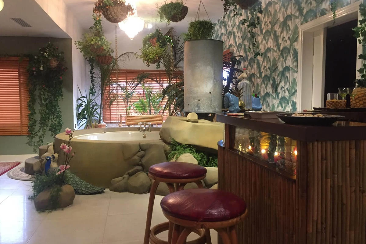 Así pues, este establecimiento hotelero tan atípico ofrece alojamiento para todos los gustos y bolsillos, con la posibilidad de reservar una delirante suite presidencial inspirada en los trópicos y «equipada con todo lo que un jefe de Estado corrupto necesitaría».