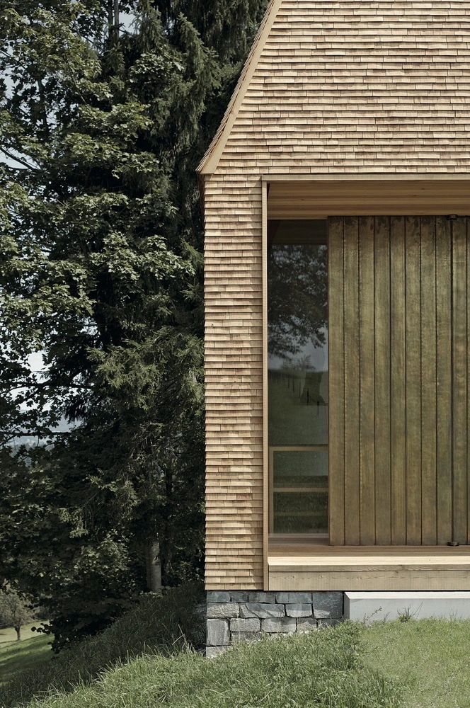 Respecto al tejado a dos aguas –con una inclinación muy pronunciada–, el sol se encargará de ennegrecer la madera del lado sur, mientras que en el norte se teñirá de un característico gris plateado, similar al de las granjas de la región.