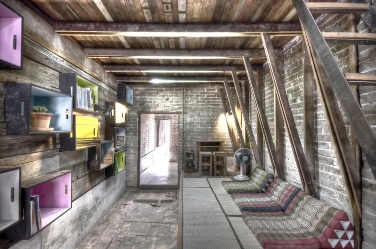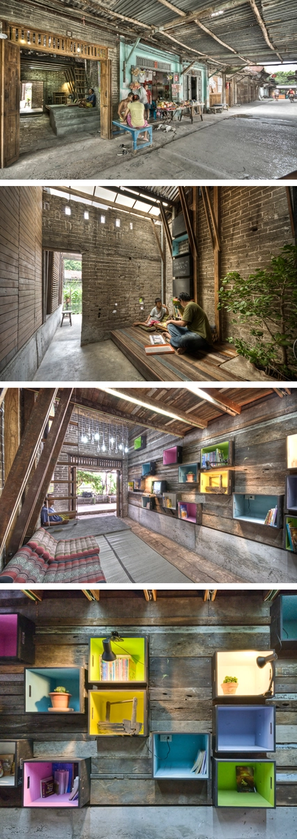 Rehabilitación de una antigua biblioteca, en pésimas condiciones, ubicada en el Old Market de Min Bun (Bangkok, Tailandia), con más de un siglo de antigüedad. La renovación se llevó a cabo por el estudio de arquitectos TYIN Tegnestue (Noruega) responsable de diversos proyectos en áreas deprimidas y pobres de Tailandia, Sumatra, Uganda y Noruega. Su objetivo es conseguir una arquitectura donde todo sirva a un propósito, una arquitectura que persiga la necesidad. Uno de los mayores desafíos de la comunidad era hacer frente a las crecidas anuales durante la época de lluvias; el agua puede crecer hasta 50cm, así que se optó por elevar las zonas secas por encima del nivel de crecida, de tal forma que la biblioteca se pudiera usar durante las inundaciones.