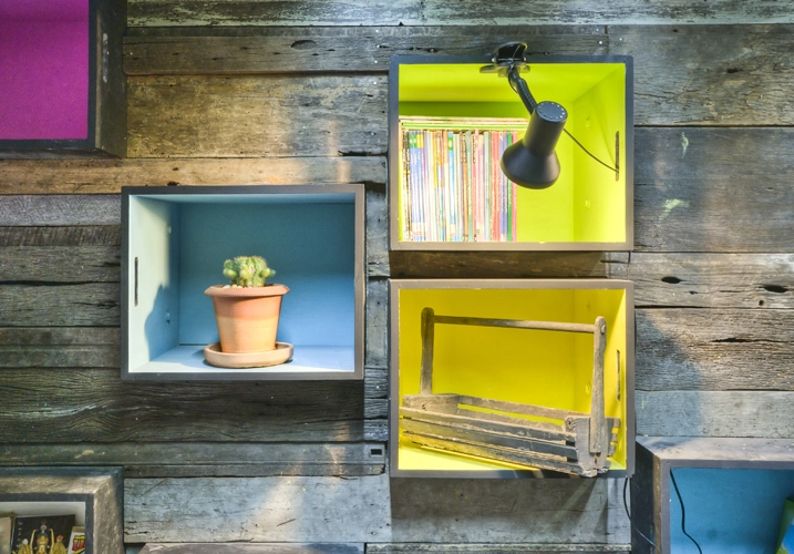 La biblioteca se divide a lo largo en dos estancias: una permite moverse a lo largo de las estanterías y , la otra, está destinada a zona de lectura y actividades pasivas. Detrás, hay un pequeño estudio; el viejo aseo se ha demolido y ahora contiene un pequeño árbol que esperan crezca sano y robusto en los próximos años; en el jardín trasero se ha instalado una pérgola para protegerse del ardiente sol. En este proyecto era primordial encontrar materiales locales reciclados; así, las estanterías se hicieron con cajas de madera y el revestimiento se ensambló utilizando trozos viejos de madera de los alrededores cercanos.