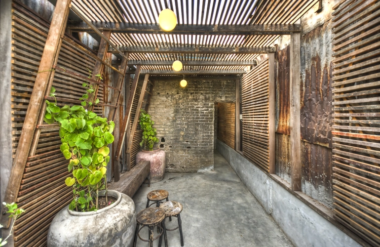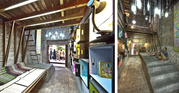 En cuanto a la estructura interna, necesitaban un material más fiable que soportara la carga así que se compró en el mercado local de madera de segunda mano. Para que este proyecto fuera un éxito era necesario involucrar a la comunidad a lo largo de todo el proceso; esto no fue nada fácil -especialmente con los adultos- pero poco a poco, a medida que la reforma iba tomando cuerpo, ésto cambió por completo: había un grupo de personas disponibles regularmente que trabajaban con los arquitectos a diario y que desarrollaron un vínculo especial con la biblioteca, una sensación de logro y orgullo, algo que los arquitectos consideraban fundamental para el óptimo desarrollo de la biblioteca a largo plazo. Para TYIN este proyecto no era sólo la renovación de una biblioteca, sino el fortalecimiento del entusiasmo en la comunidad; fue una demostración de lo que cada persona es capaz por sí misma a través de la propia iniciativa, el uso de materiales locales baratos y su propio conocimiento.