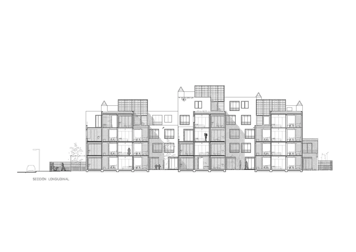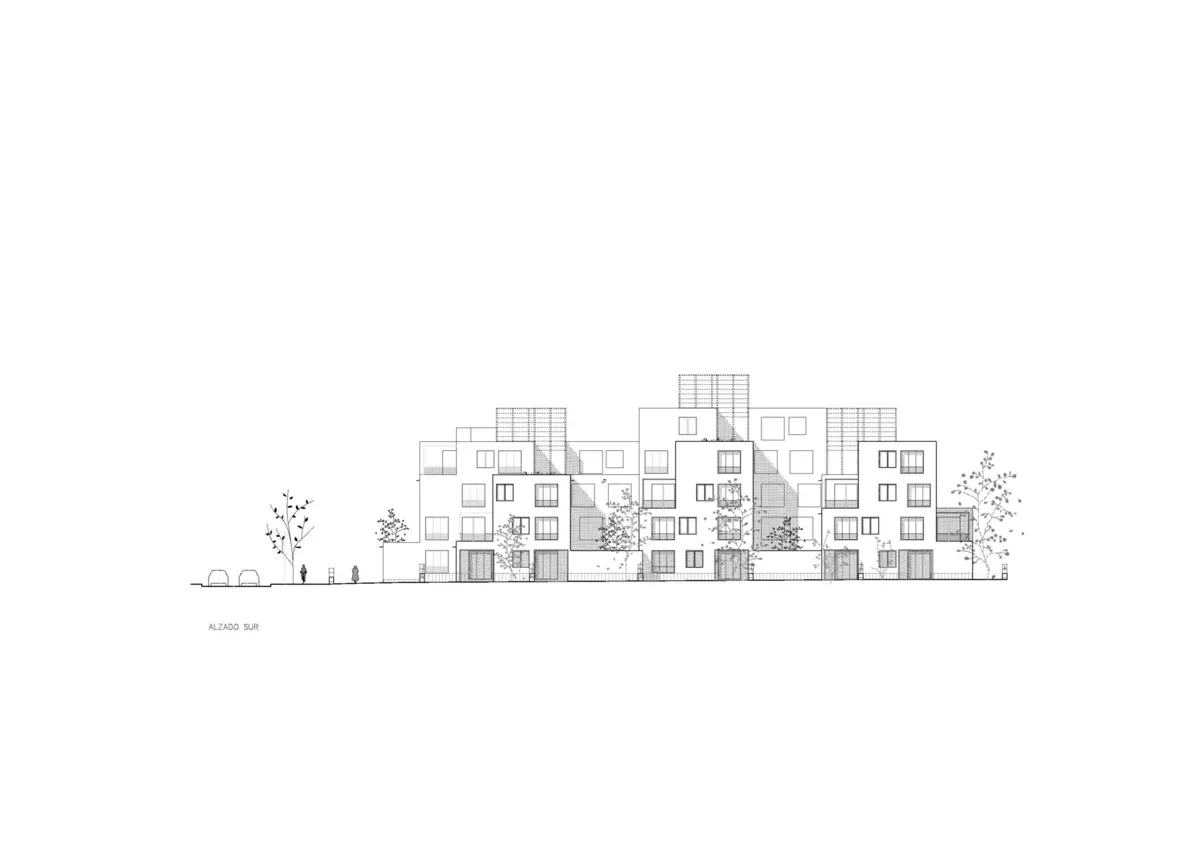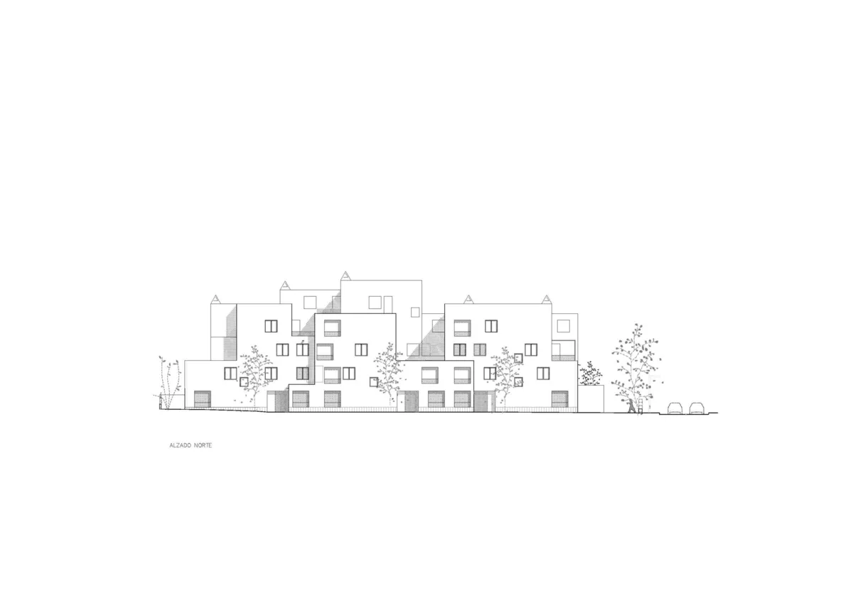 La intención residía en diseñar un edificio de bajo coste que ejerciera de extensión del terreno, adaptándose con formas complejas y dentadas a semejanza del terreno rocoso. Como corazón del proyecto, hacer viviendas bioclimáticas con calefacción y refrigeración pasiva. Este último punto fue el que definió el material estructural, con la necesidad de una alta masa térmica, como la tierra.