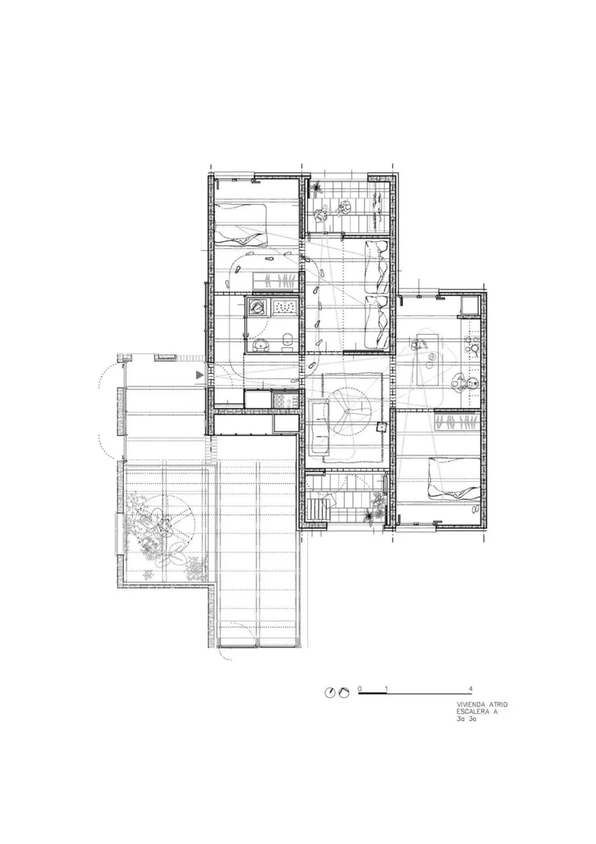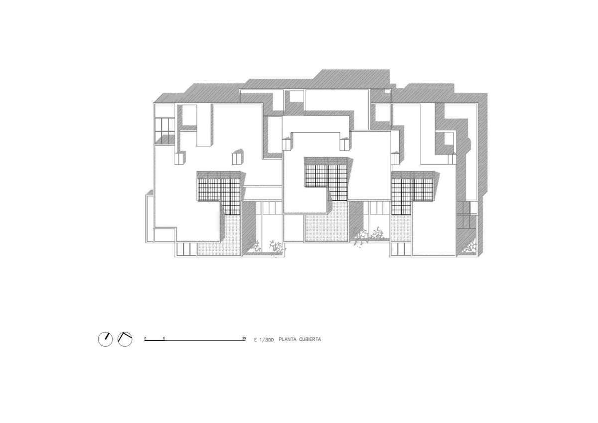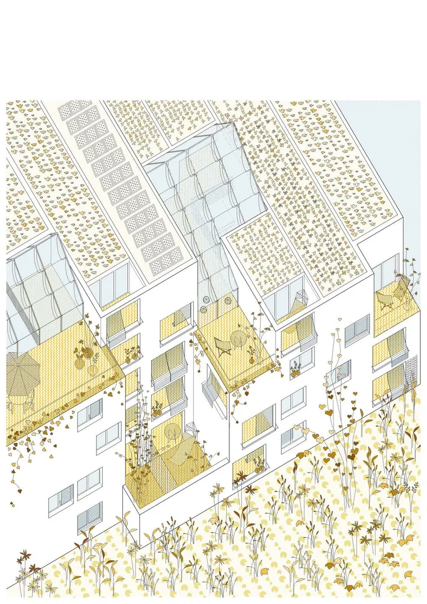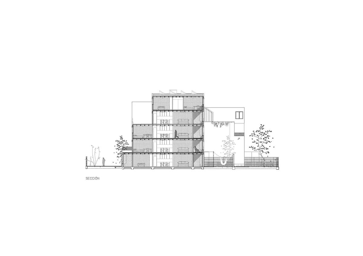 La intención residía en diseñar un edificio de bajo coste que ejerciera de extensión del terreno, adaptándose con formas complejas y dentadas a semejanza del terreno rocoso. Como corazón del proyecto, hacer viviendas bioclimáticas con calefacción y refrigeración pasiva. Este último punto fue el que definió el material estructural, con la necesidad de una alta masa térmica, como la tierra.