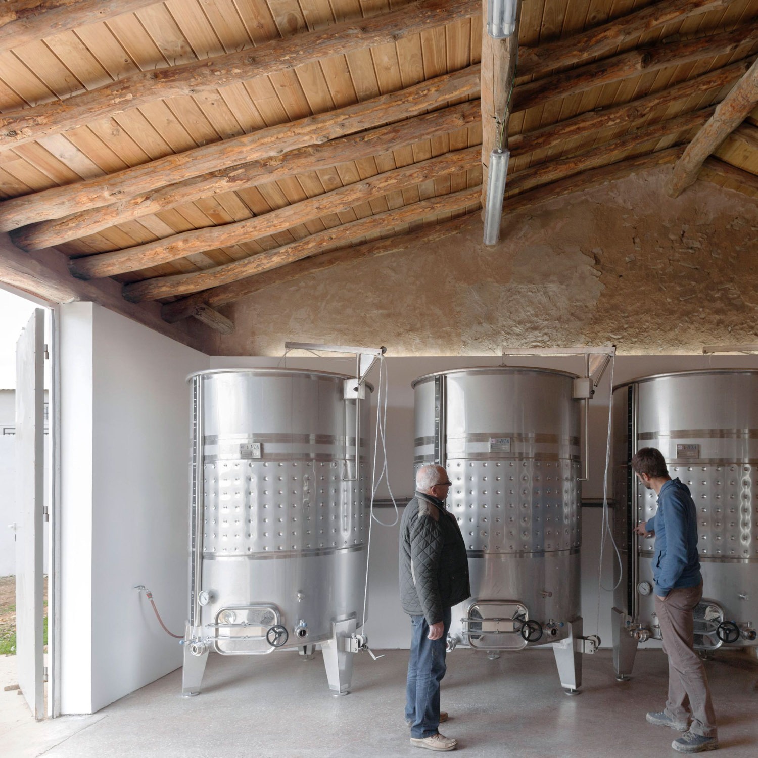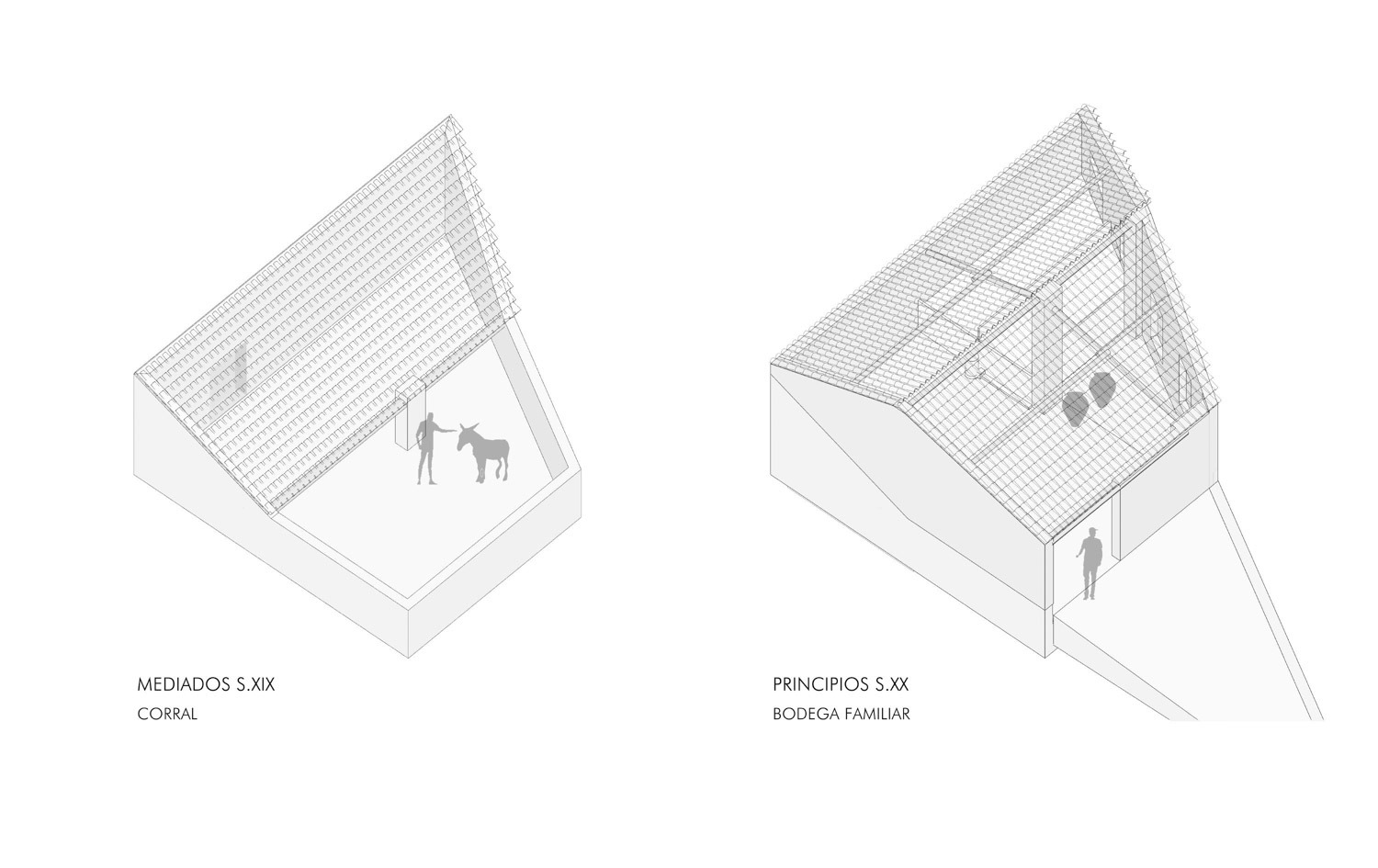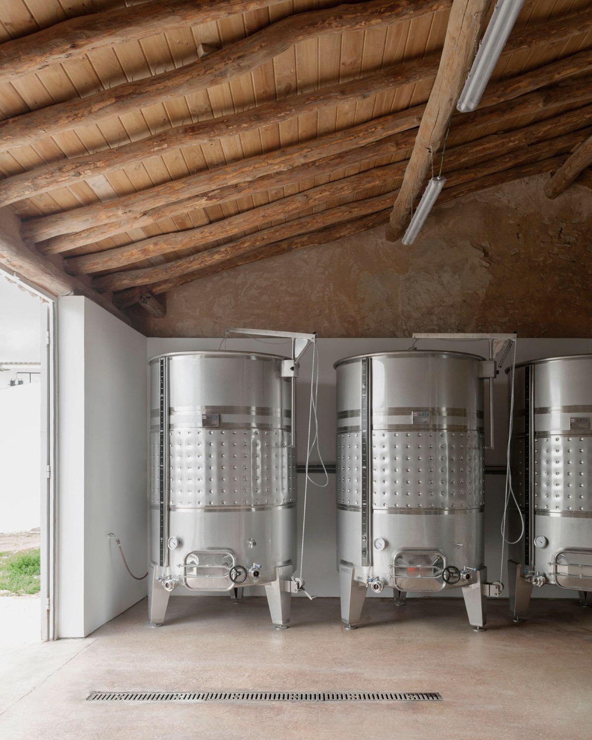 La superficie rehabilitada abarca aproximadamente 156 m², acentuando la economía de medios para albergar funciones vinícolas modernas sin olvidar la génesis del edificio.