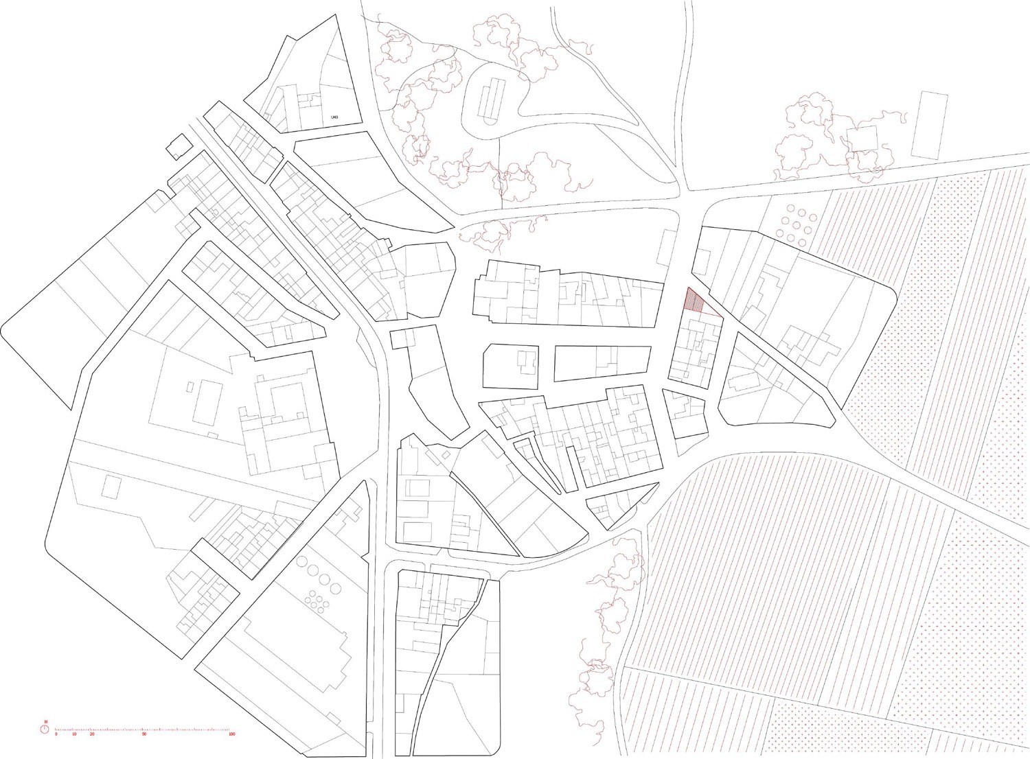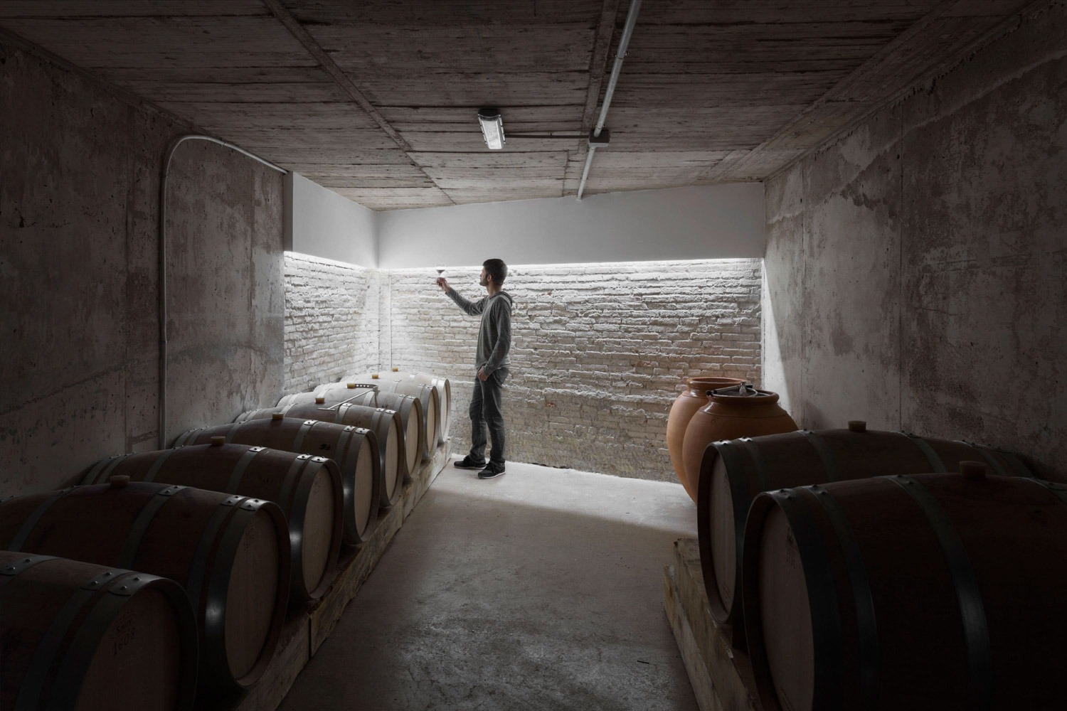 En el núcleo rural de Los Pedrones, Requena (Valencia), CRUX arquitectos ha abordado la reconstitución de una vieja bodega con múltiples vidas precedentes. El proyecto parte del valor emocional y patrimonial del edificio original, transformado durante décadas: de granero a almacén vinícola, después recinto cooperativo abandonado. Los encargados, descendientes de su promotor inicial, han regresado desde Francia para reactivar tanto la producción vitivinícola como la memoria familiar.