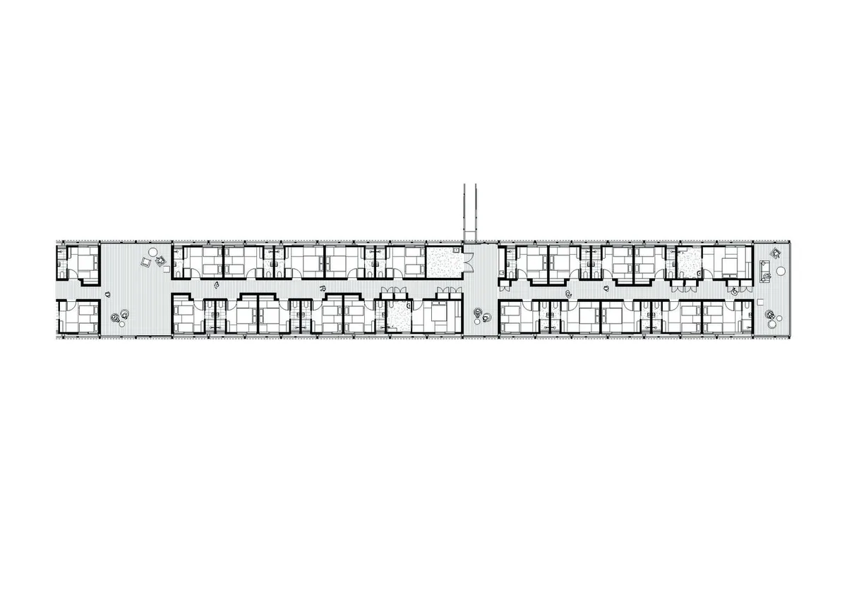 No es solo estructura de paso: alberga 32 dormitorios, aulas creativas, zonas de restauración y espacios públicos.