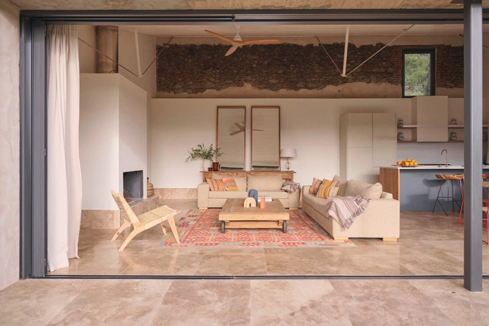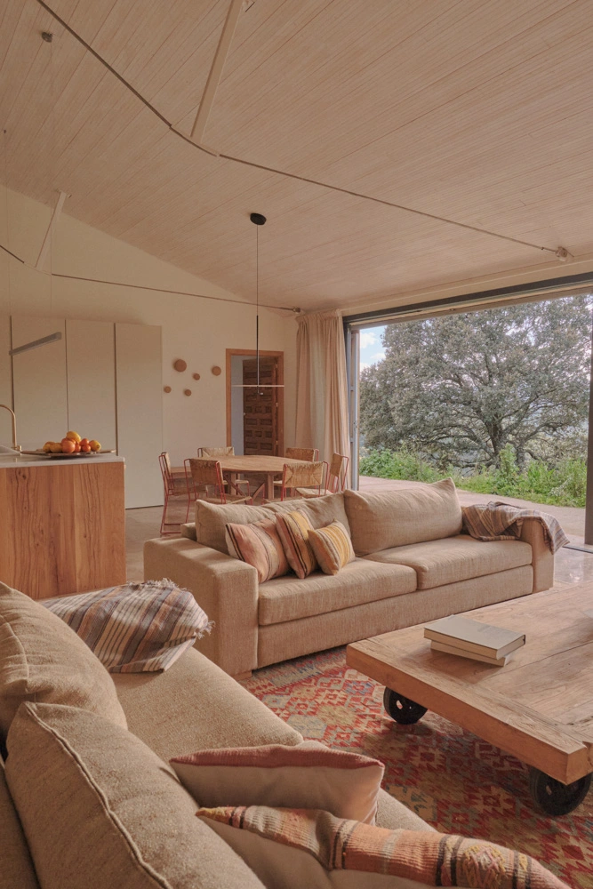 Uno de los aspectos más destacados del proyecto es su capacidad para integrarse en el paisaje. La incorporación de grandes ventanales y el respeto a la sabia orientación de la vivienda original, permiten aprovechar al máximo la luz natural y establecer una conexión directa con el exterior. Esta interacción entre el interior y el paisaje refuerza la experiencia de habitar una casa de campo que respeta y realza el entorno.