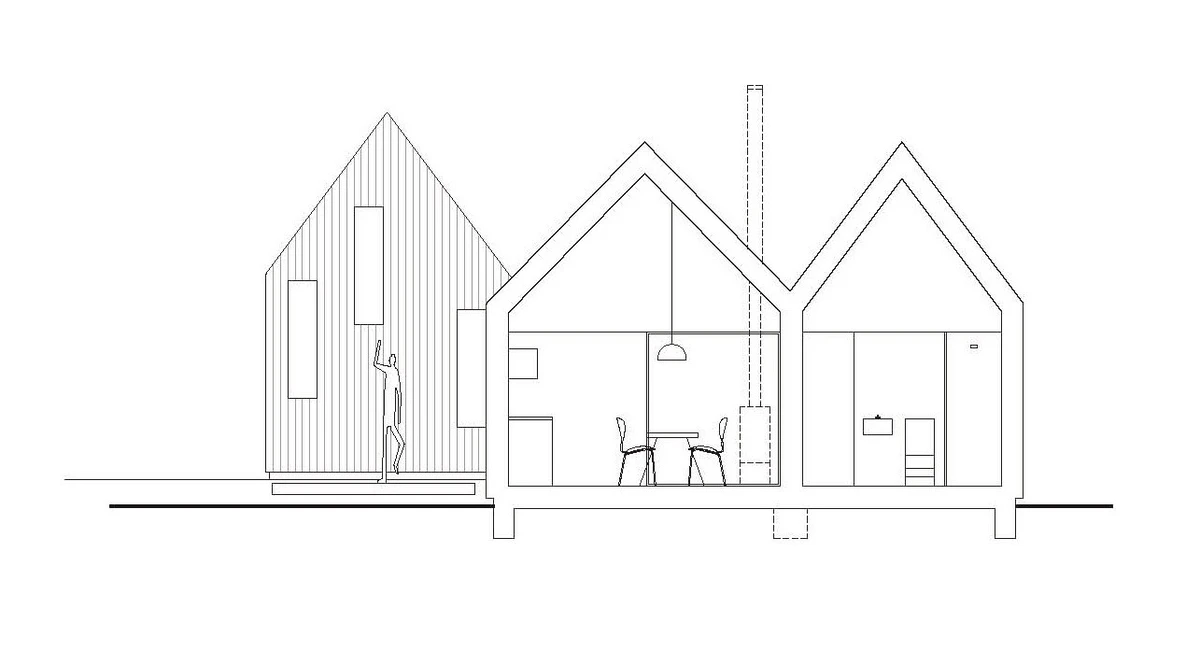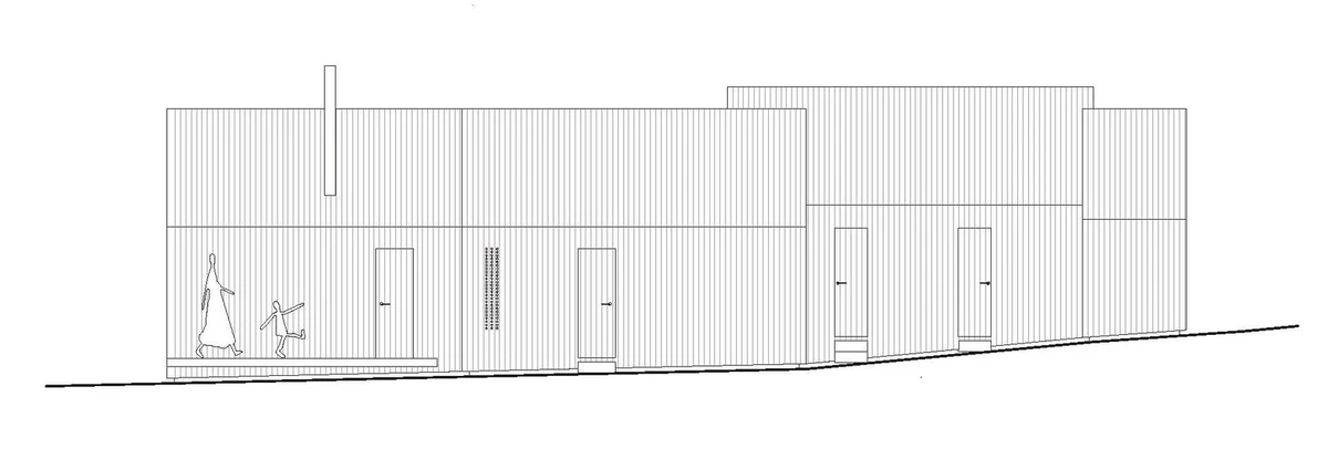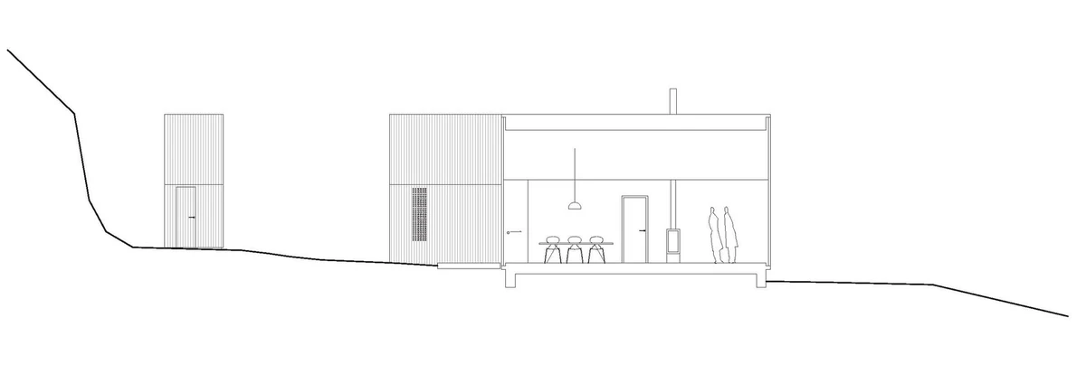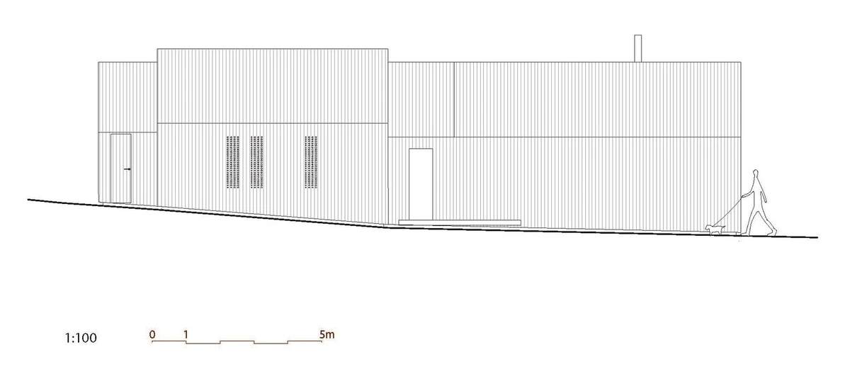 Inspirados en las cabañas tradicionales de madera, cada edificio tiene carácter propio, pero con rasgos volumétricos comunes que convergen en torno a un patio al aire libre delimitado por ellos mismos, la zona arbolada, un pequeño cobertizo y la colina situada al noreste.