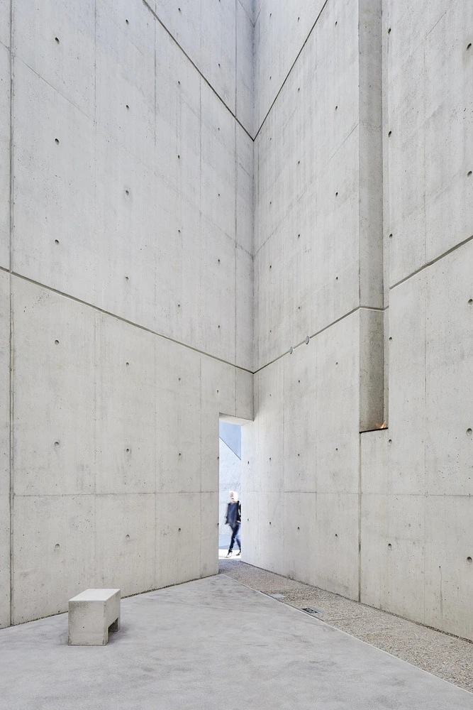 A fin de evocar el ambiente de la época, el artista canadiense Edward Burtynsky incorporó fotografías de gran formato al hormigón. Son instantáneas sobrecogedoras en blanco y negro de los lugares del horror (campos de exterminio y bosques), un duro reflejo de la soledad y el desaliento.