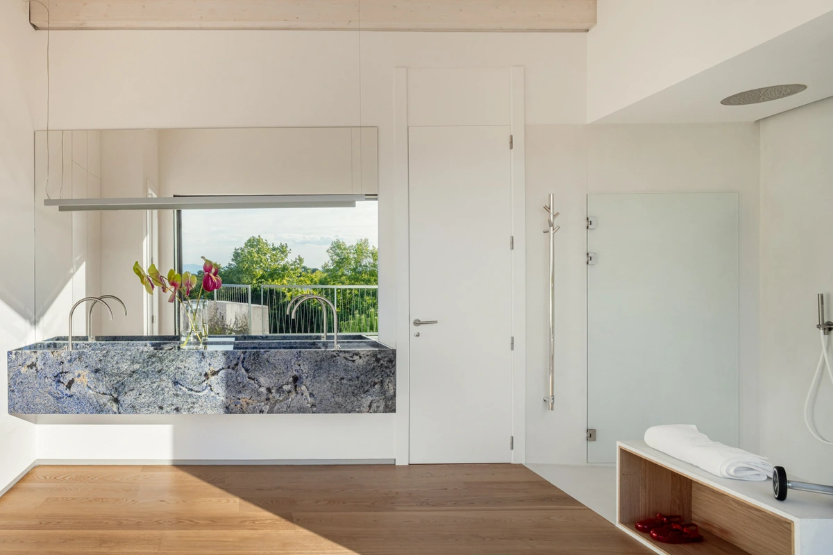 En La Moraleja, zona de la periferia de Madrid, el estudio de arquitectura, interiorismo y paisajismo ÁBATON ha desarrollado Casa Brisa, un proyecto que sostenible que responde a las necesidades de la vida moderna desde la empatía. Este ejemplo de arquitectura residencial responde a las necesidades actuales sin perder de vista la funcionalidad y el respeto por el medio ambiente, destacando en el panorama de la arquitectura en Madrid. Un proyecto que es fiel y recoge los aspectos más esenciales de la filosofía ÁBATON, habiendo desarrollado el proyecto de arquitectura, el de interiorismo, el paisajismo y también la construcción.