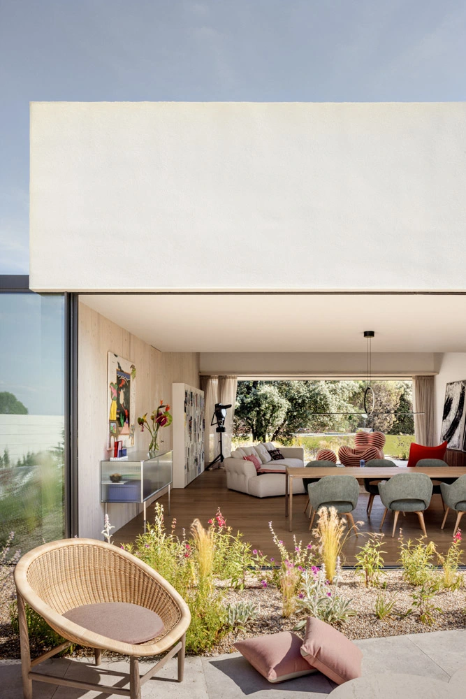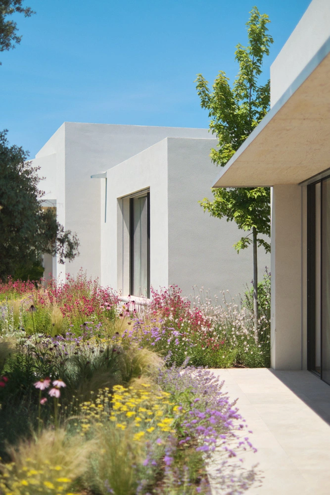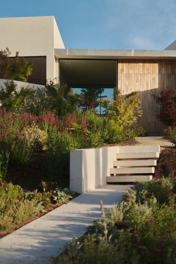 En el proyecto de paisajismo que acompaña a la vivienda, se pueden encontrar variedades autóctonas y de bajo mantenimiento que generan un diálogo en textura y color con la arquitectura a lo largo del año.