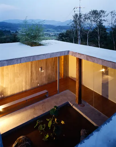 Proyecto de BCHO Architects (Seul). La vivienda se diseñó como un refugio de la bulliciosa vida de Seul, y se ubica en un lugar tranquilo, sobre una colina con vistas a los arrozales de Yangpyoung.