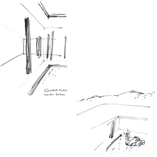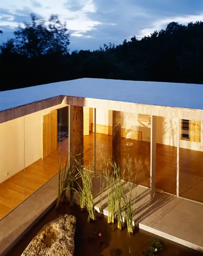 La casa es un cubo de 14x14mts con un jardin acuático abierto de 5x5mts en el centro; se trata de una forma absolutamente sencilla y primitiva. Los arquitectos pensaron que diseñar teniendo en cuenta lo primitivo o básico devuelve el misterio a nuestras vidas y permite experimentar los cambios imperceptibles de la naturaleza. En este caso, la intención fue que la luna y la luz de luna fueran las protagonistas en el interior, por lo que en realidad, se trata de un observatorio lunar. Los detalles son simples, limpios y primitivos ya que se buscó que la estructura exterior se percibiera lo suficientemente industrial.