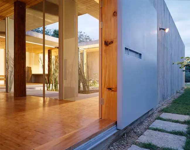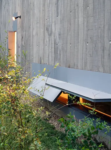 Se centraron en 3 detalles: ventanas y puertas de acero que se cierran desde el exterior sin marcos para que aparezcan limpias e industriales; la cubierta plana de apenas 30.5cm de grosor -estructura, acabado y aislamiento incluidos-, una claraboya sin marco de vidrio laminado de 7.6cm insertado en el vano del hormigón.