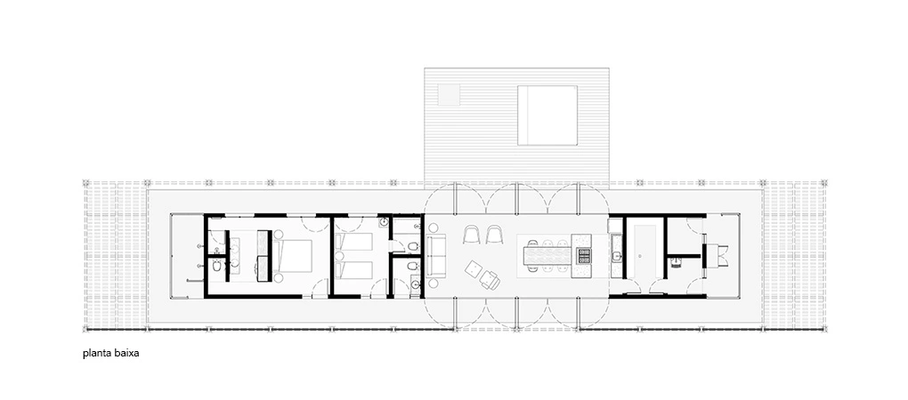 Así mismo, se dispuso un «aceiro» o cinturón de seguridad sin vegetación en torno a la casa, algo indispensable en un bioma donde los incendios naturales ocurren con cierta frecuencia. Y, por supuesto, se instalaron paneles solares en un área cercana a la casa, que aseguran el suministro eléctrico a toda la vivienda.