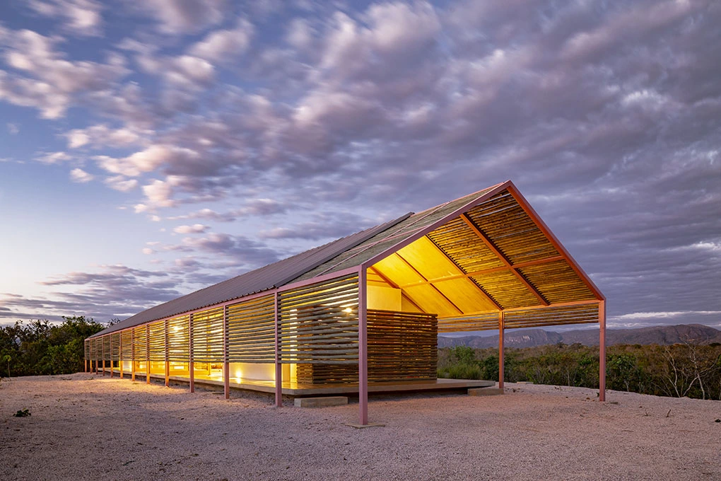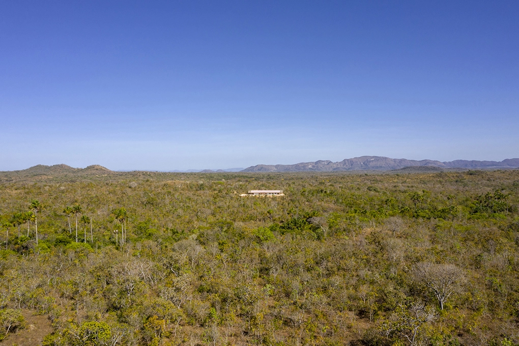 Situada junto al Parque Nacional Chapada dos Veadeiros, la remota Casa Cavalcante apenas destaca sobre el «cerrado», un paisaje de sabana tropical particularmente frondoso que ocupa más del 20 % de la superficie de Brasil.