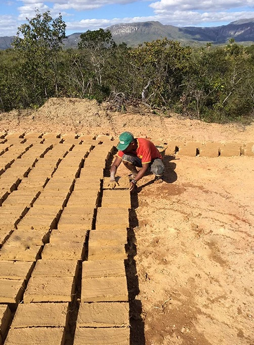 Para construir los muros perimetrales se usaron ladrillos de adobe elaborados con arcilla local, un material con buena inercia térmica, ideal para climas cálidos y húmedos como este. El ladrillo hueco tradicional se reservó para los tabiques, ya que en las paredes de adobe no se pueden empotrar las conducciones eléctricas e hidráulicas.