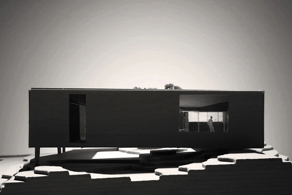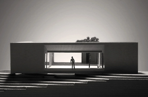 Las funciones se agrupan juntas, dejando el resto del volumen interior claro y transparente. Hecho de bloques longitudinales alrededor de un área central abierta, la vivienda se orienta hacia este centro, que en si mismo, no tiene ninguna función específica y por lo tanto, constituye un centro neurálgico inmaculado e intacto.