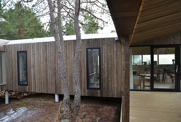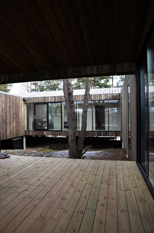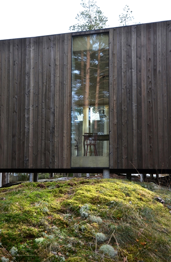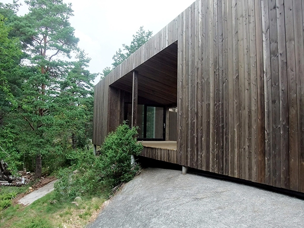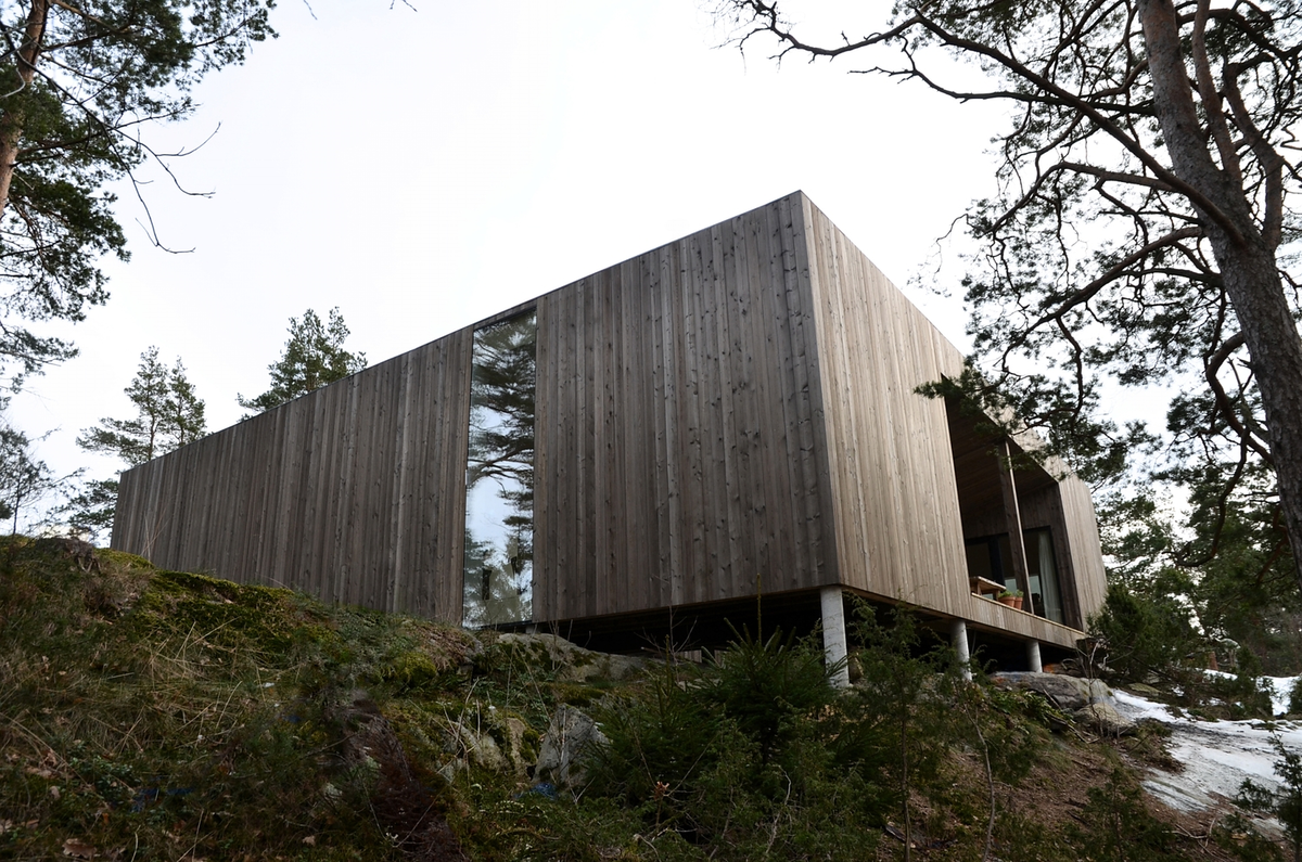 La vivienda se sitúa en un bosque de pinos en Veierland, una isla libre de automóviles, a las afueras de Notteroy, en Vestfold (Noruega). Se sostiene con sutiles pilares sobre lo alto de una montaña rocosa, confiriendo a la casa un aire a palafito que planea sobre el bosque sin dejar huella.