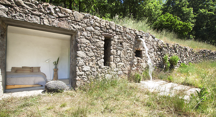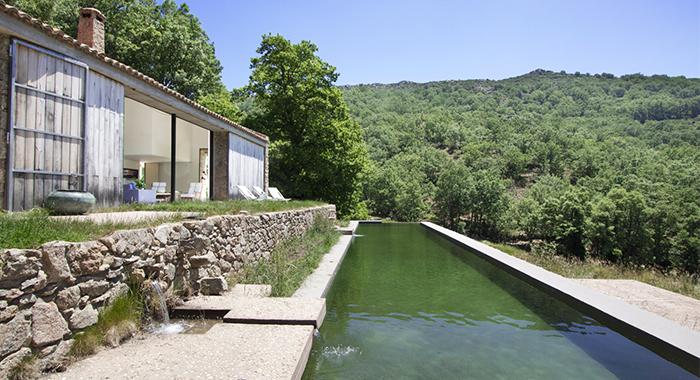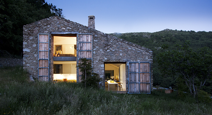 Se trata de una casa autosuficiente desde el punto de vista energético que obtiene la energía de paneles fotovoltáicos y de unas turbinas instaladas en el cauce de dos arroyos que pasan por la finca.