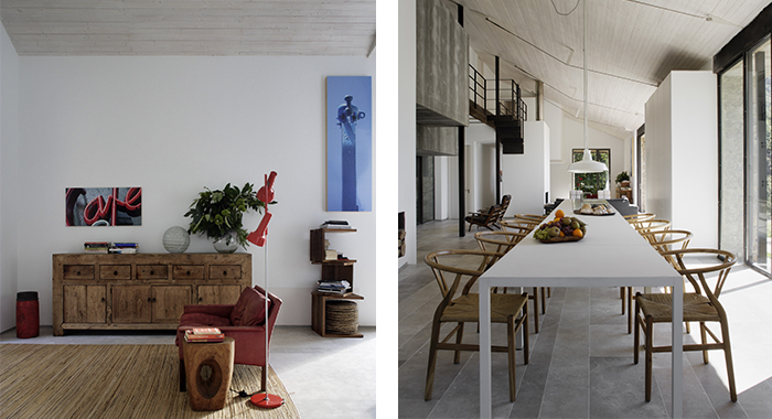 La gran cantidad de espacio disponible, propició que el proyecto de interiorismo fuese todo un reto para BATAVIA y le permitió explayarse en su más pura concepción de la decoración. Planteando desde un principio la mezcla en la que se desenvuelve con tanta soltura, una selección de las mejores marcas de mueble de diseño nacionales e internacionales iconos del diseño del siglo XX, piezas vintage procedentes fundamentalmente del norte de Europa y Francia, piezas únicas antiguas procedentes de Asia y piezas de la colección propia de BATAVIA.