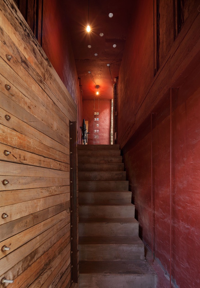 Por su parte, los bloques suspendidos albergan los espacios íntimos —habitaciones, estar, servicios—. Las aperturas se orientan y diseñan para favorecer la ventilación cruzada: el viento predominante del noreste enfría el verano, y la elevación protege de vientos fríos en invierno.