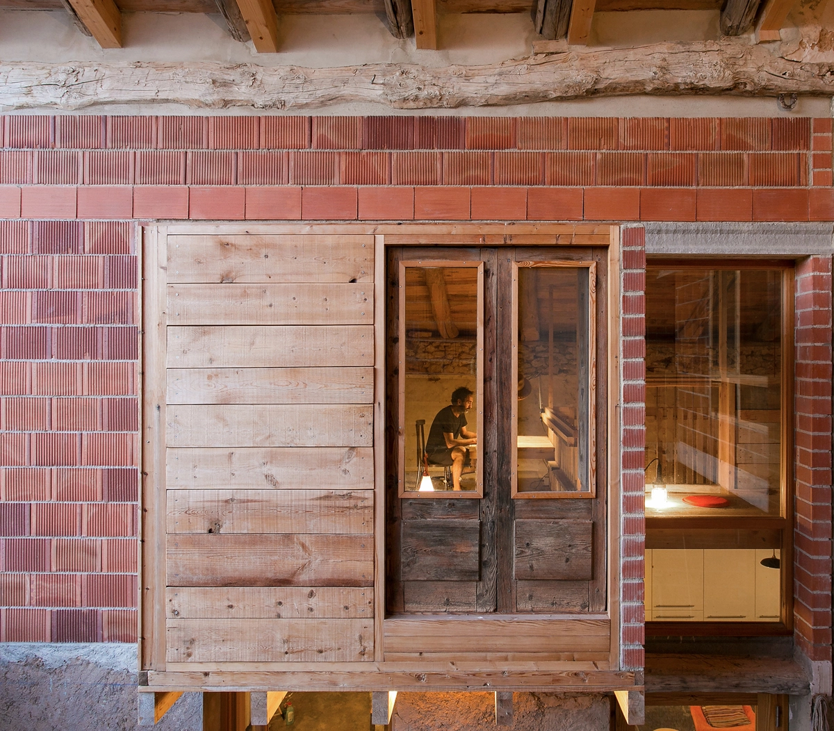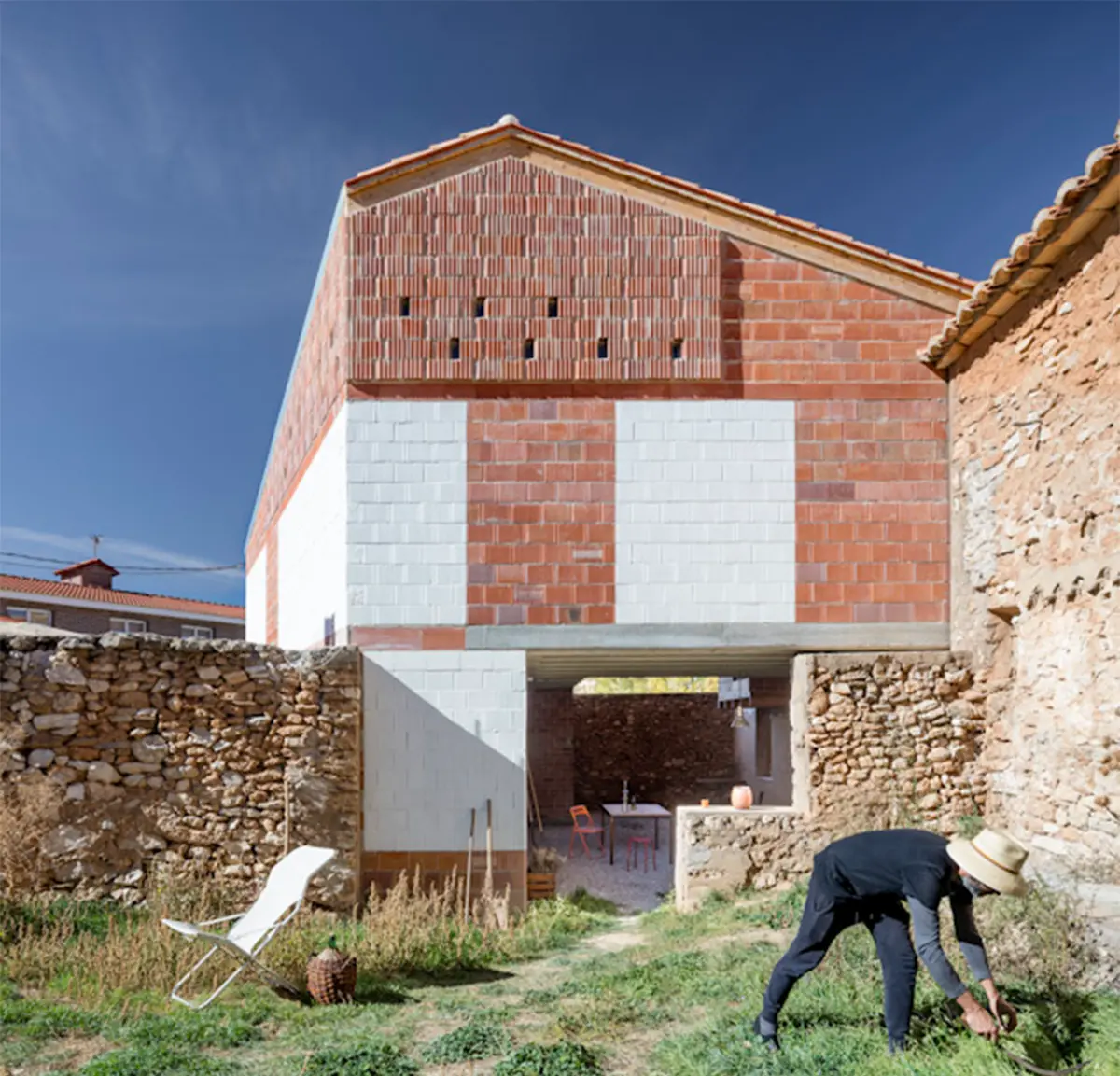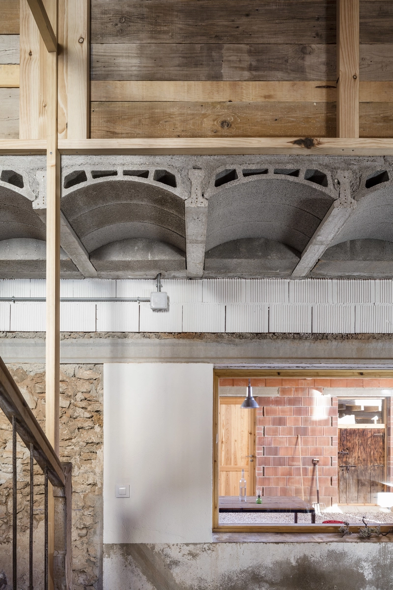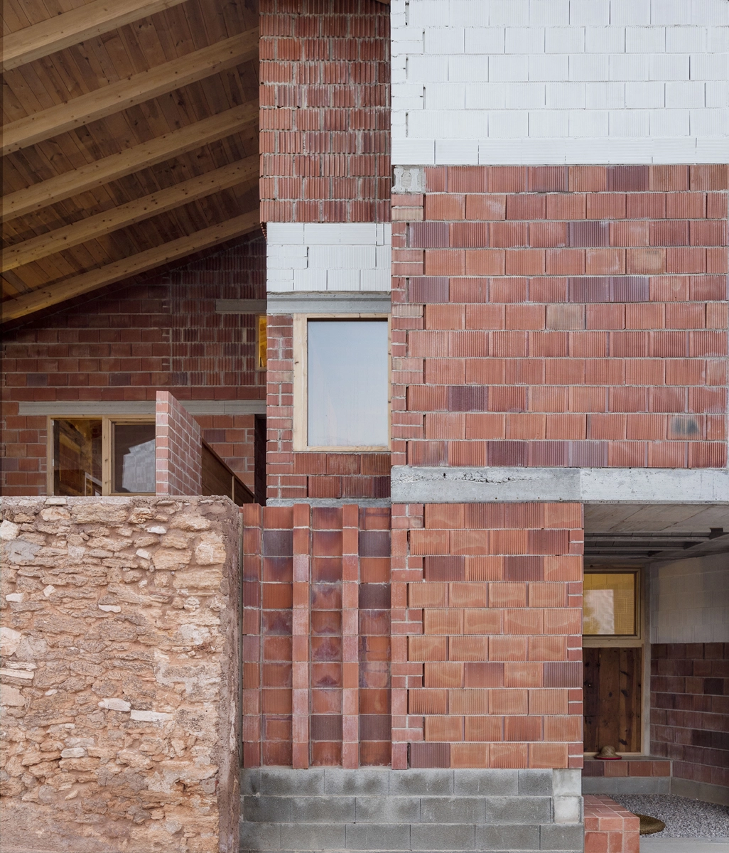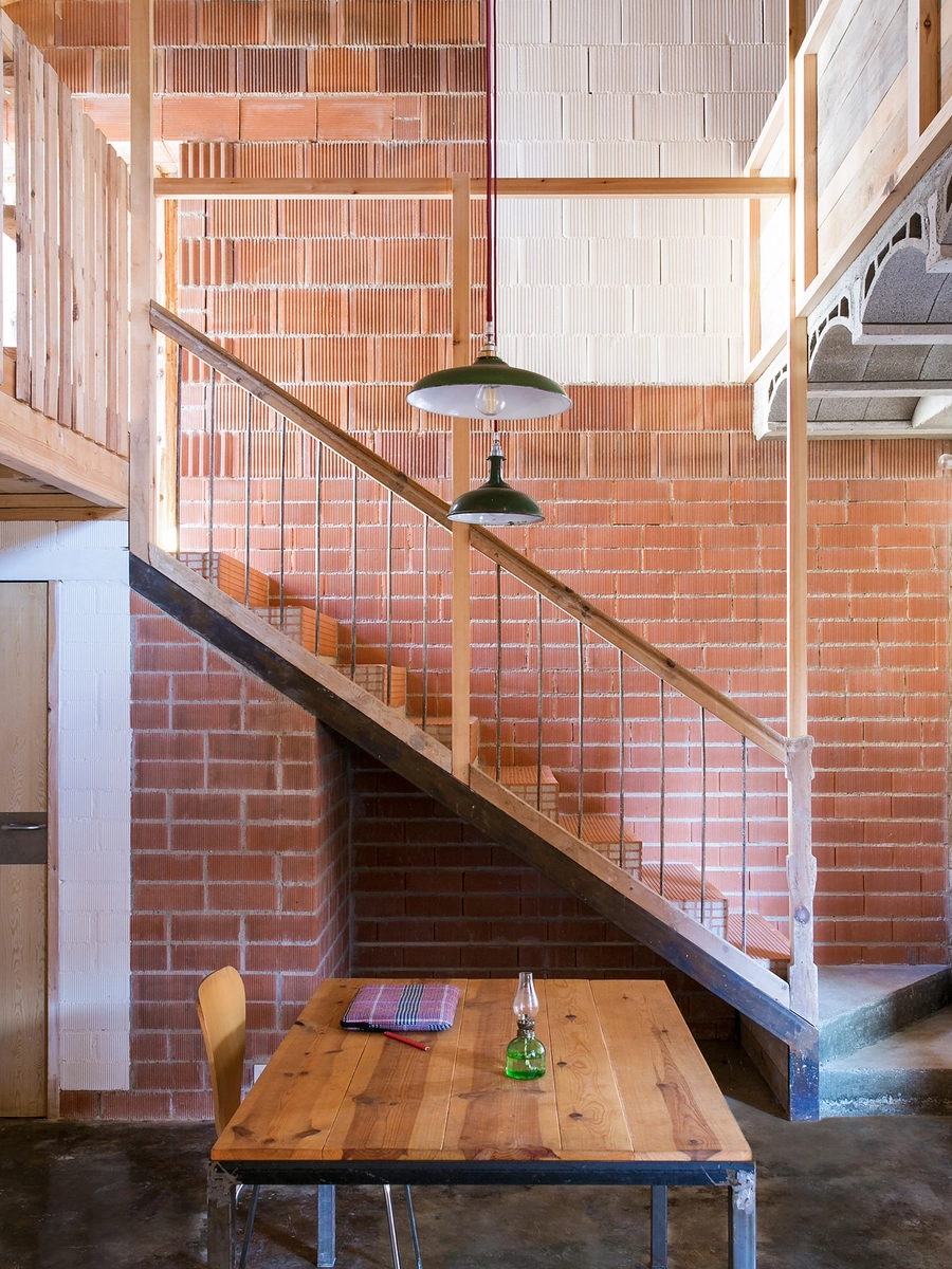 La sencillez del planteamiento continúa en la elección de los materiales: ladrillo, cerámica, madera y hormigón, todos de uso habitual en la zona. De hecho, se aprovecharon varios sobrantes de stock y multitud de piezas de carpintería (puertas, ventanas, barandillas) recuperadas de la propia majada y de otras casas demolidas.