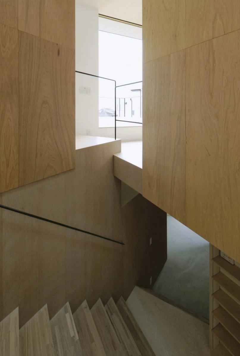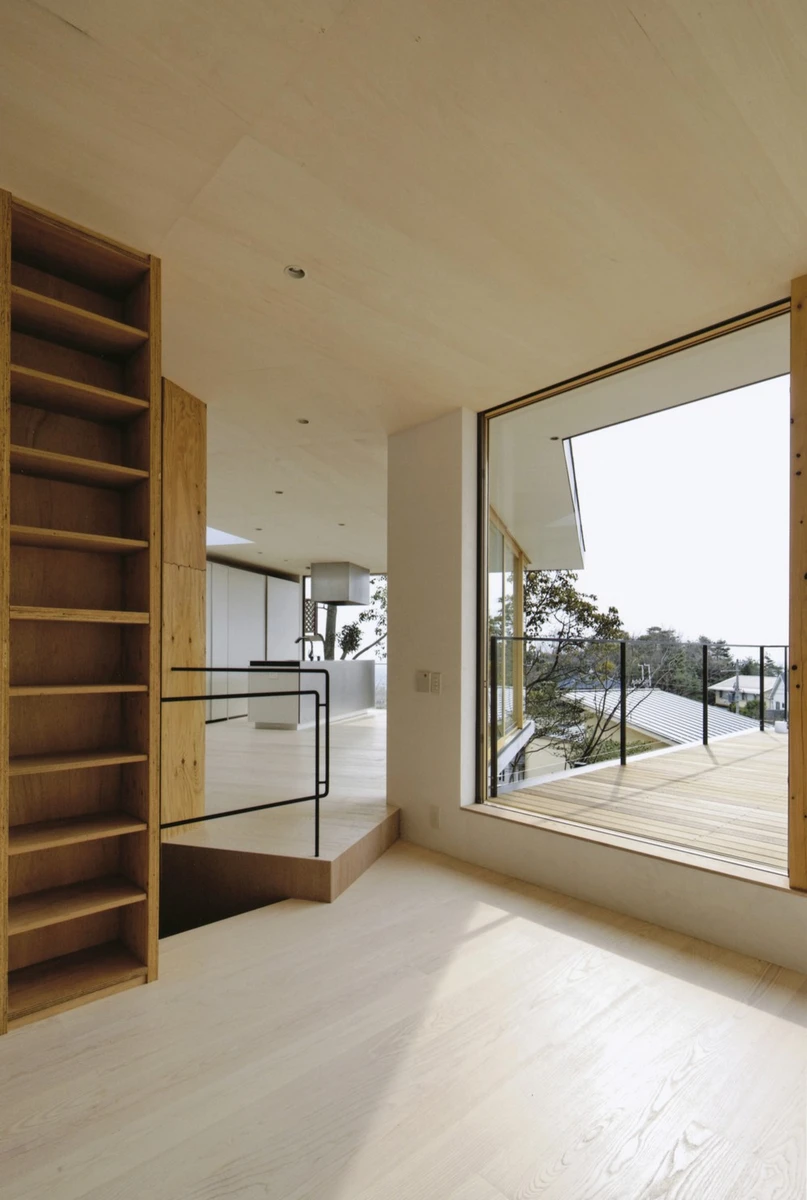 Proyecto de Shogo Aratani Architec & Associates en Hyogo (Japón). Vivienda familiar ubicada en una zona residencial donde, afortunadamente, la naturaleza se conserva intacta, en una parcela con pendiente, en medio de un bosque. En la parte superior del terreno hay un árbol de alcanfor y un cerezo que se integran en el diseño del proyecto.