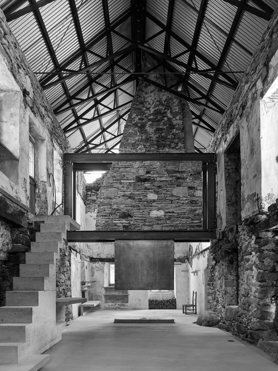 El paso del tiempo se había cebado con los elementos de madera, como vigas o separaciones entre plantas, por lo que el antiguo edificio principal se convirtió en una casa de verano. Se desmanteló toda la estructura intermedia, lo que dio lugar a una gran sala presidida por la chimenea de piedra. En vez de ocultar la historia bajo una capa uniforme de enlucido blanco, se mantuvo visible en las paredes.