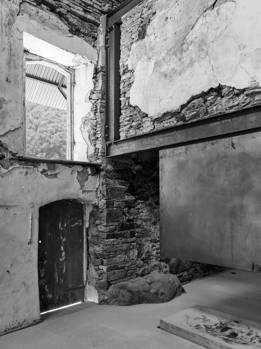Los artesanos locales se encargaron de la restauración de los muros de piedra seca, en especial de la enorme terraza frente al valle, que ofrece una panorámica impresionante de la riqueza natural del Tesino.