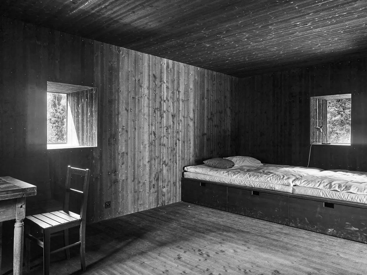 Por su parte, el anexo primitivo hacia el oeste se encontraba en mucho mejor estado, lo que permitió conservar el tejado de vigas de madera. El interior se revistió en el mismo material hasta lograr un espacio práctico y acogedor donde pasar la temporada invernal.
