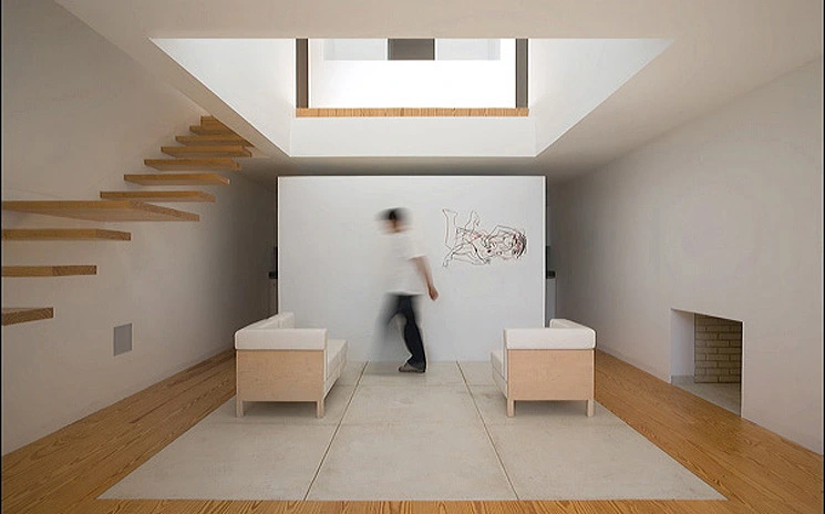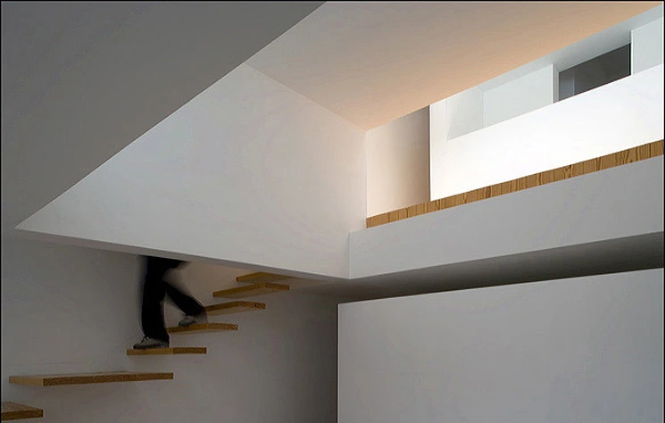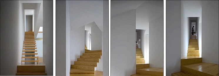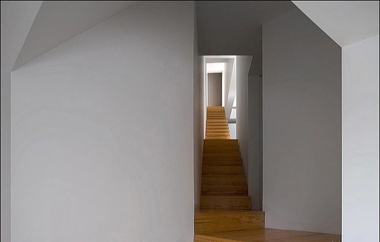 Interiormente captan la atención espacios minimalistas blancos en techos y paredes y combinados con los solados y escaleras de madera natural que aporta calidez al conjunto. Esta atmósfera, unida a las vistas, hace de la vivienda un emplazamiento perfecto para la relajación y el descanso, tal y como se buscaba tratándose de una vivienda vacacional.