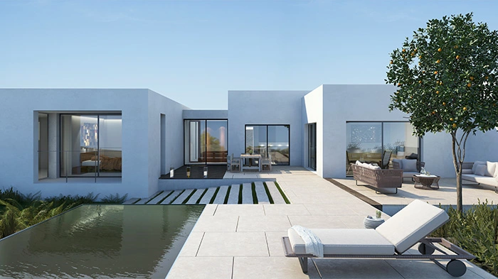 privacidad. Se ha estudiado la mejor orientación de cara a un mejor aprovechamiento de los recursos, y se ha respetado el concepto arquitectónico local -mediterráneo- dotándolo de un estilo más moderno y depurado.