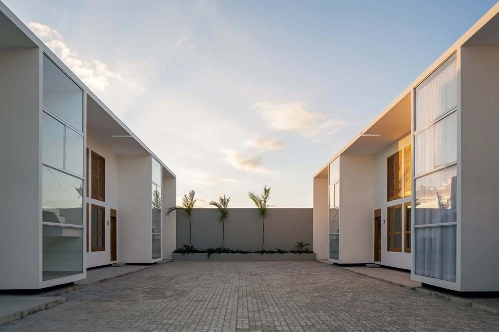 Diseñado de acuerdo a una estructura compacta, las unidades están articuladas en pares de núcleos que albergan las principales estructuras y toda la construcción de instalaciones, además de las circulaciones verticales. El entrelazamiento de estas actividades básicas es lo que permite que las unidades puedan aprovechar el tamaño del lote de la manera más eficiente. Sus modulaciones permiten el uso de estructuras convencionales de hormigón armado y losas prefabricadas, que hacen que la construcción sea más rápida y económica. Cerraduras de albañilería, losas de cemento, policarbonato, madera y tejas de metal corresponden a las condiciones constructivas de las que están expuestos, haciendo uso de la variedad de materiales para una composición de tecnologías tradicionales y contemporáneas.