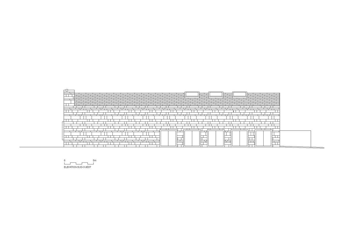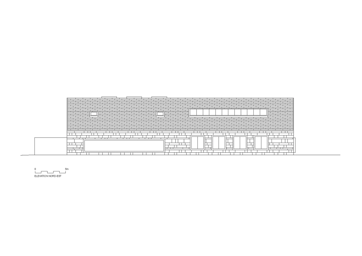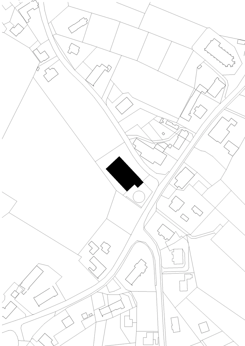 La morfología de la edificación se asienta en granjas y en edificios públicos de los alrededores. Presentando una simplicidad arcaica, el techo se extiende hacia abajo y evoca un arquetipo arquitectónico a través de la reinterpretación de las siluetas conocidas