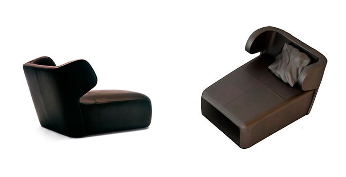 Un modelo moderno y exclusivo de chaise longe es el DC100 de la marca Ceccotti. Se trata de una chaise longue que aporta elegancia a la estancia gracias a su formas redondeadas y su acabado en cuero.