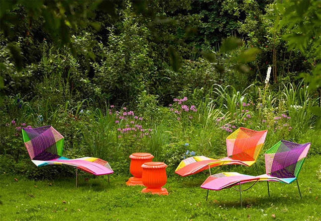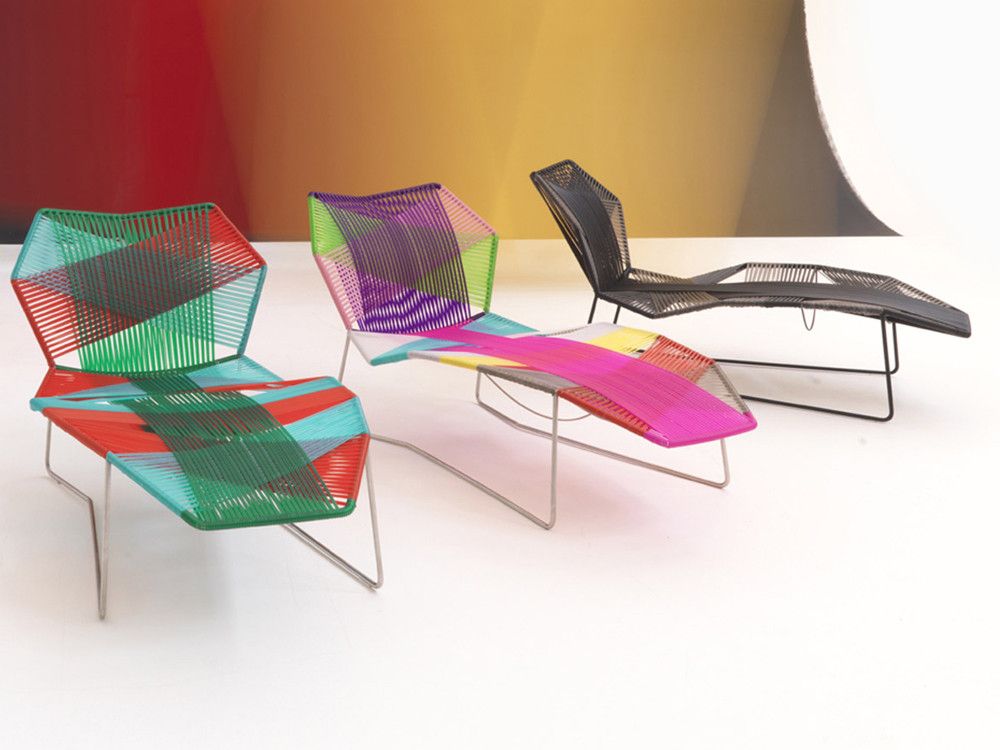 Una chaise longue con un diseño rompedor y moderno, Tropicalia, creada por Patricia Urquiola para la marca Moroso, posee un estilo alegre y divertido que mezcla colores vivos en su trenzado, creando formas geométricas.