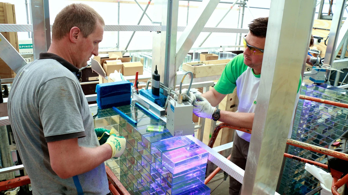 Por su parte, a fin de lograr un efecto continuo espectacular, la empresa alemana Delo Industrial Adhesives desarrolló un adhesivo transparente de gran resistencia para sustituir al mortero tradicional.