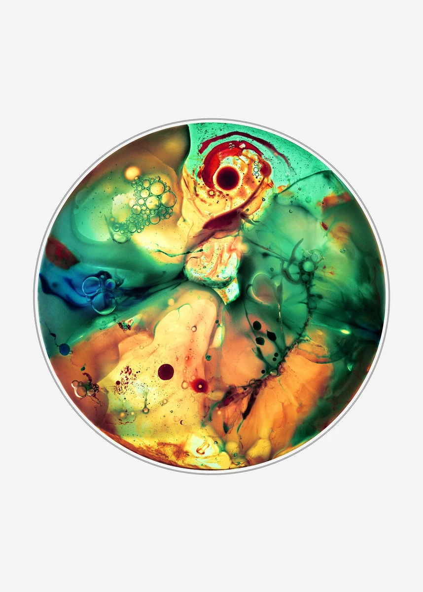 A primera vista, podríamos pensar en galaxias en colisión o en un remedo a pequeña escala del Holi, el festival hindú de primavera donde se mezclan un sinfín de colores brillantes. Salvo quizá por las burbujas, nada nos recuerda a un experimento de laboratorio.