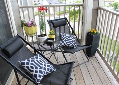 Si tu balcón no tiene mucha anchura, la idea de recurrir a mesas de exterior plegables y sillas de exterior plegables, es un buen recurso.