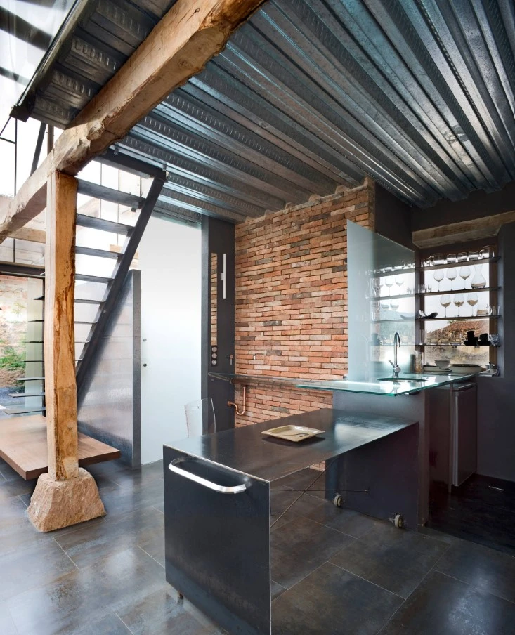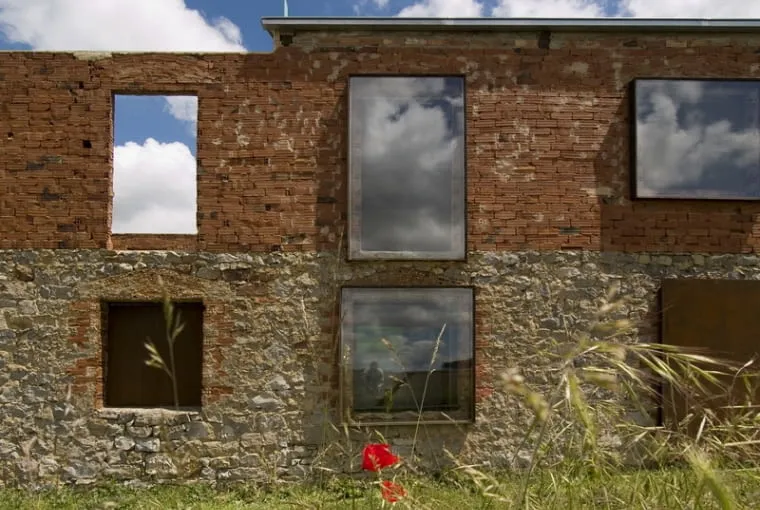 Se añaden así elementos de gran significado material (vidrio, acero, madera, ladrillo) que resuelven el problema de hacer el espacio habitable, evidenciando a la vez la precariedad de lo ya construido, que permanece congelado en el tiempo, conservando el aspecto de inacabado, de ruina.