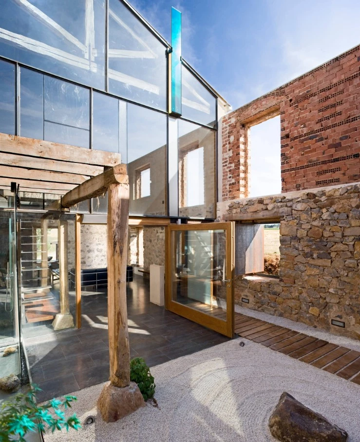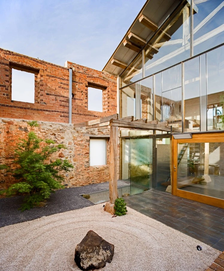 La intervención parte de la idea de hacer habitable una construcción ya existente, en estado de ruina, con la premisa de actuar dentro de unos espacios en bruto mediante una intervención aparentemente mínima, pero muy meditada y potente, que pusiera en valor el aspecto inacabado, incompleto de lo que ya existía. Conseguir la percepción de “estar habitando una ruina”.