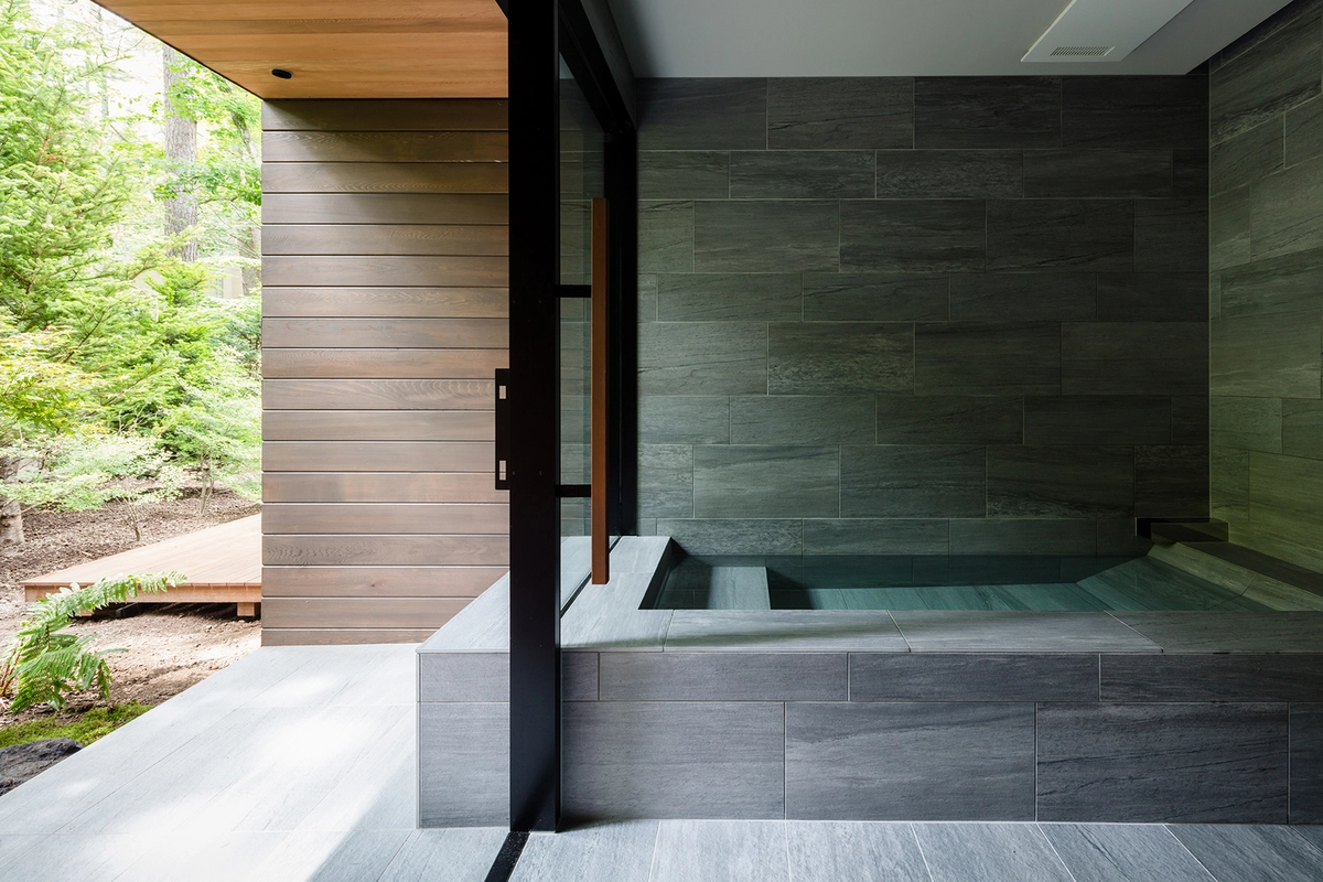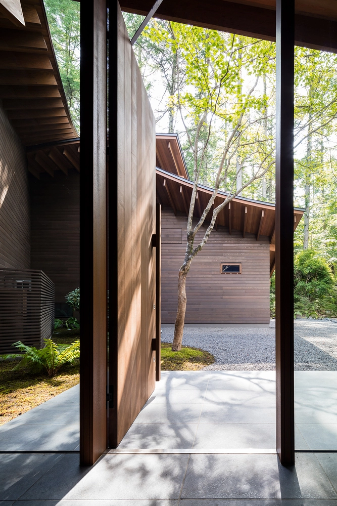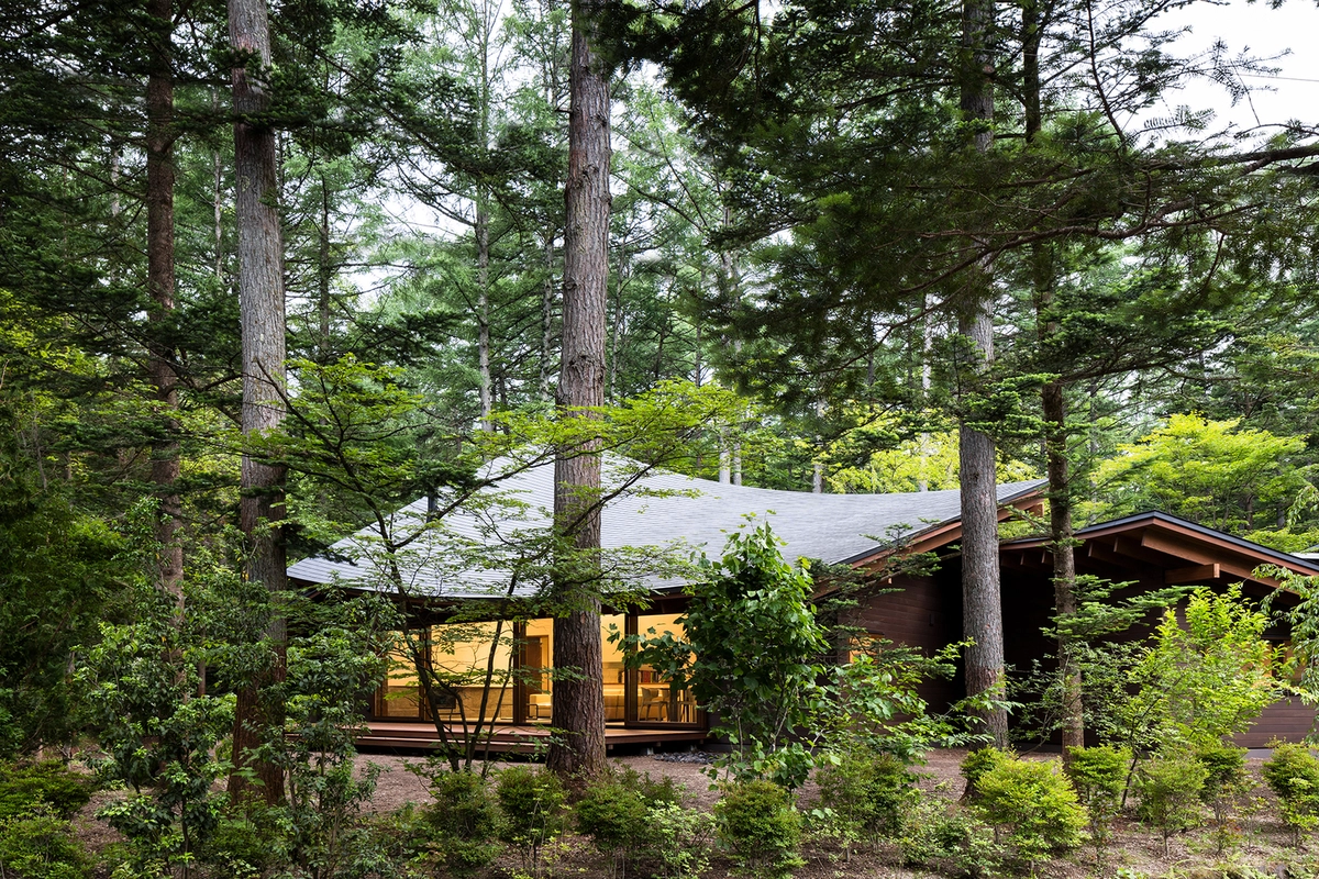 Esta frondosa zona de montaña –a tan solo 150 kilómetros de Tokio– es un destino turístico popular debido a la abundancia de aguas termales. Así pues, los clientes deseaban una vivienda para disfrutar junto con sus amigos de estos beneficios para la salud, pero no en un lugar masificado, sino en una parcela en pleno bosque.